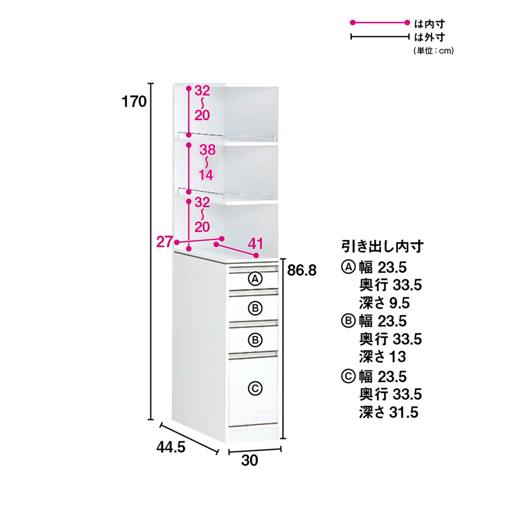 (イ)ホワイト ※写真は幅20奥行44.5cmタイプです。