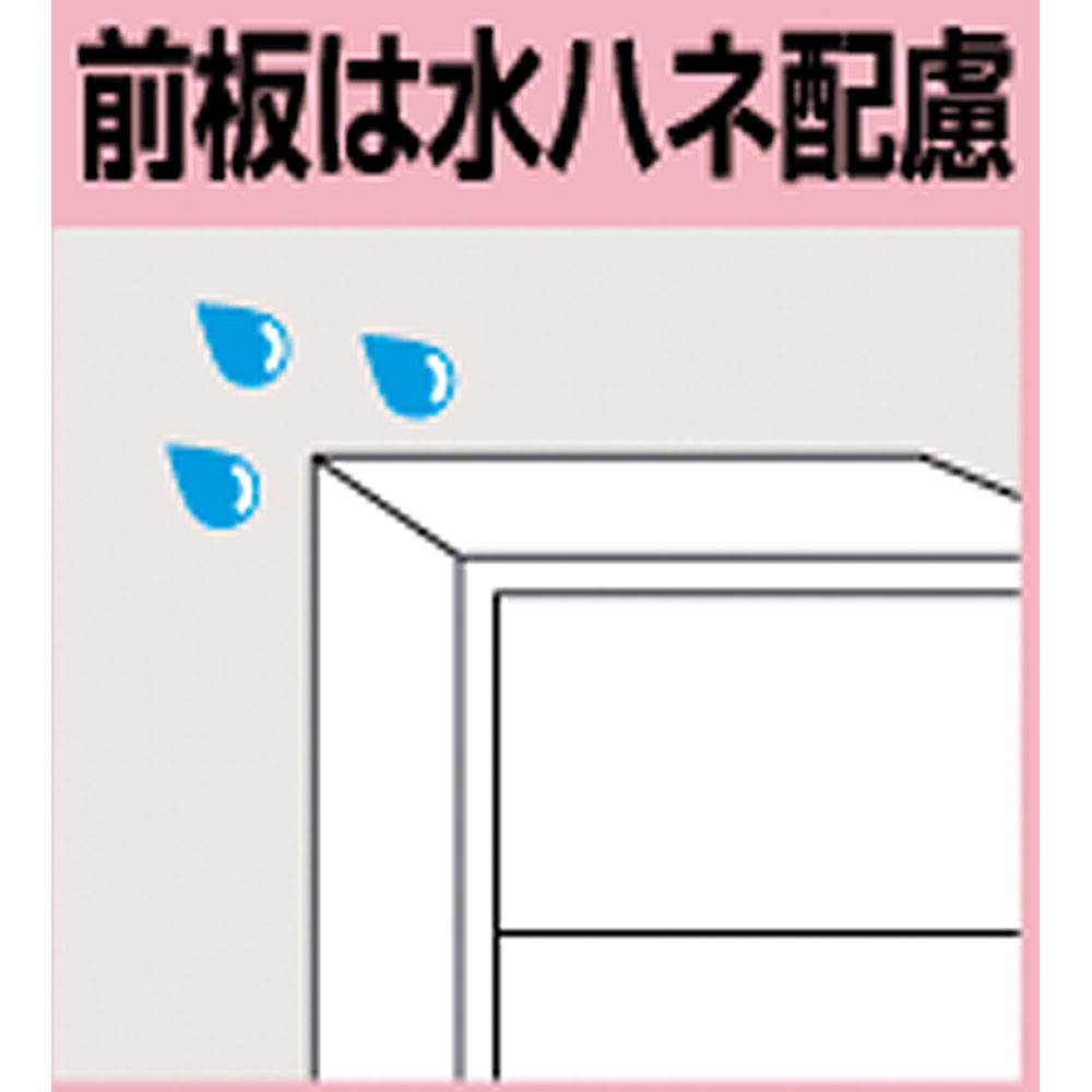 前板は水ハネ配慮。 側面や天板はキズや汚れに強いとされるクリーンイーゴス紙を採用。