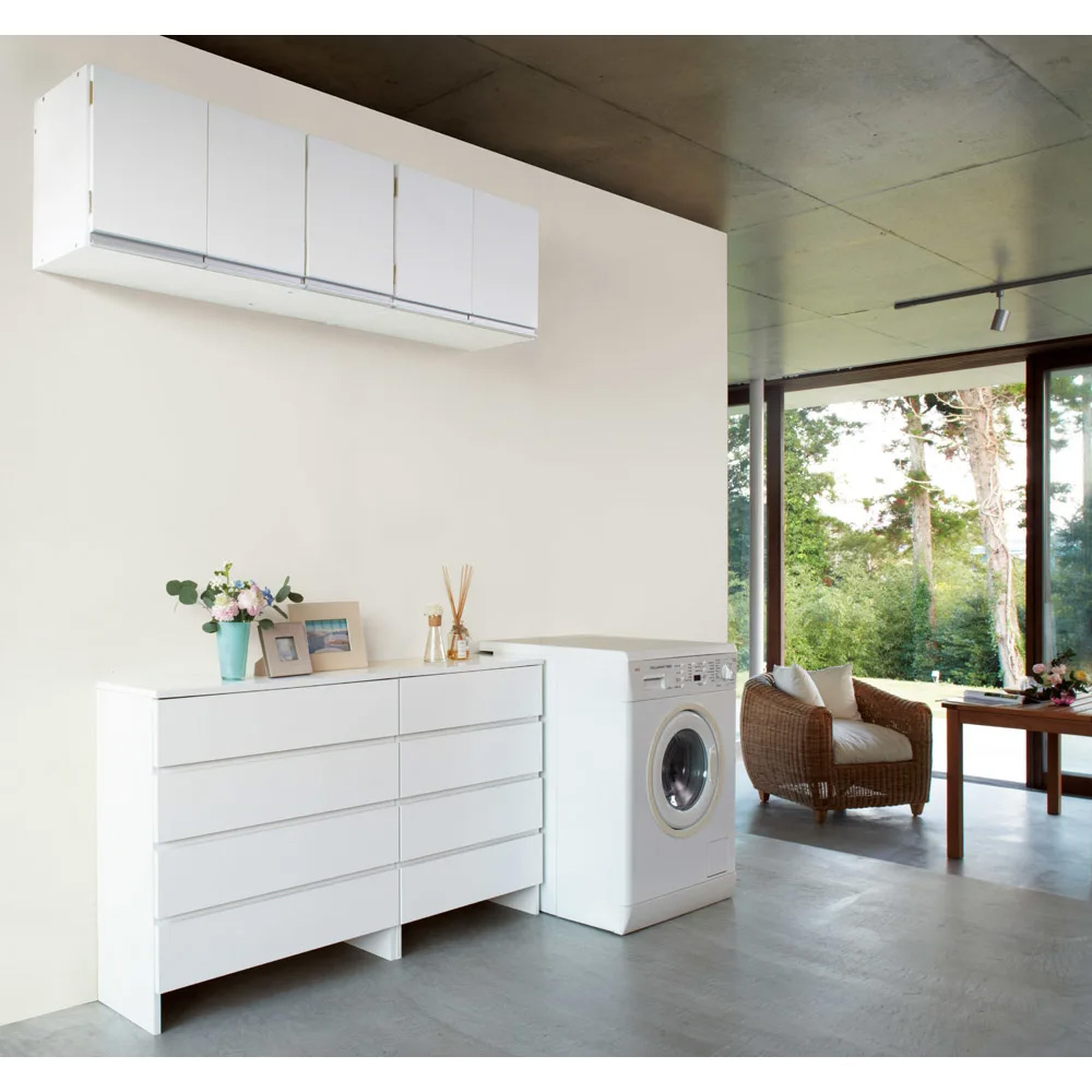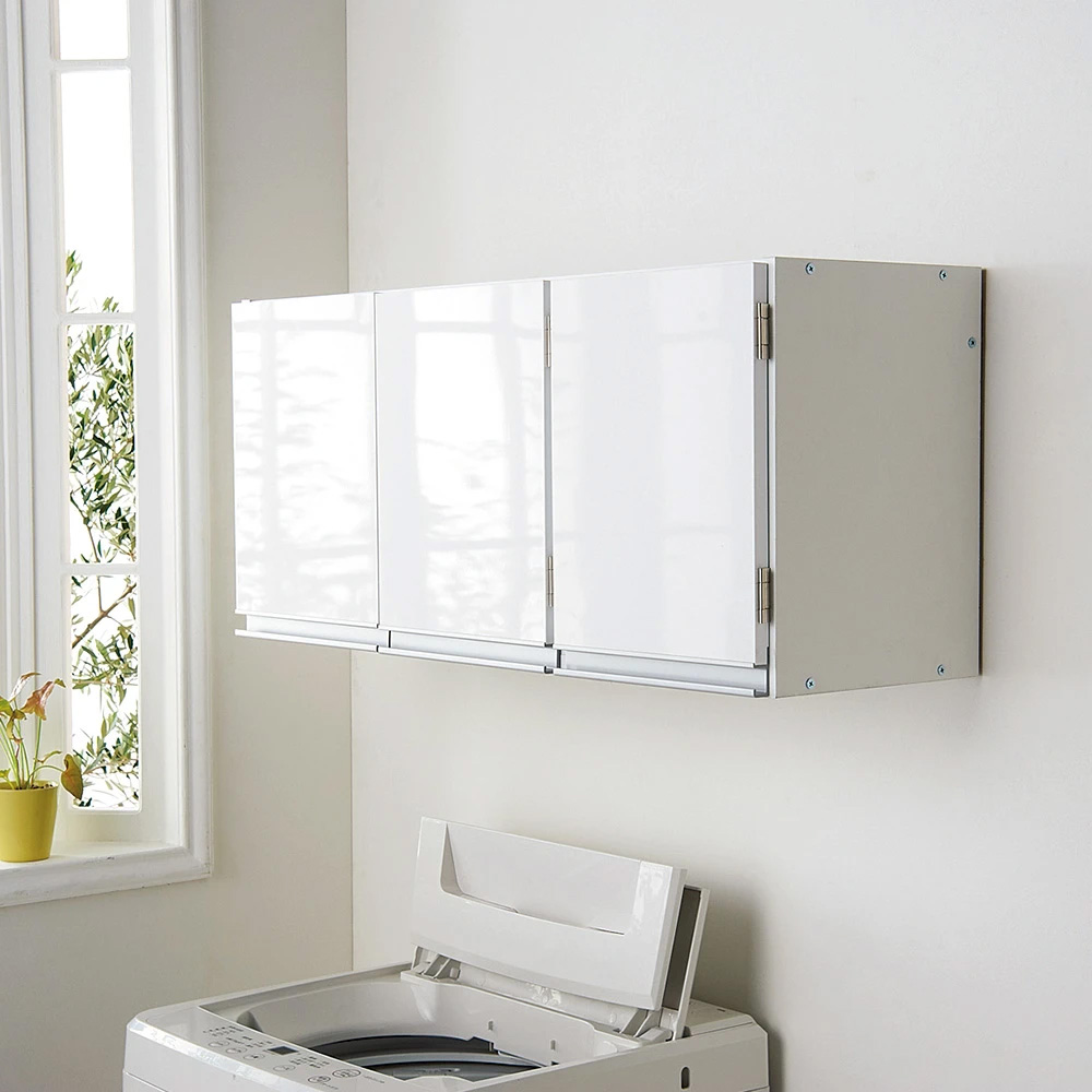 奥行30cmの浅型の吊り戸棚で、洗濯機の上やトイレ上を便利な壁面収納に変えてくれます。