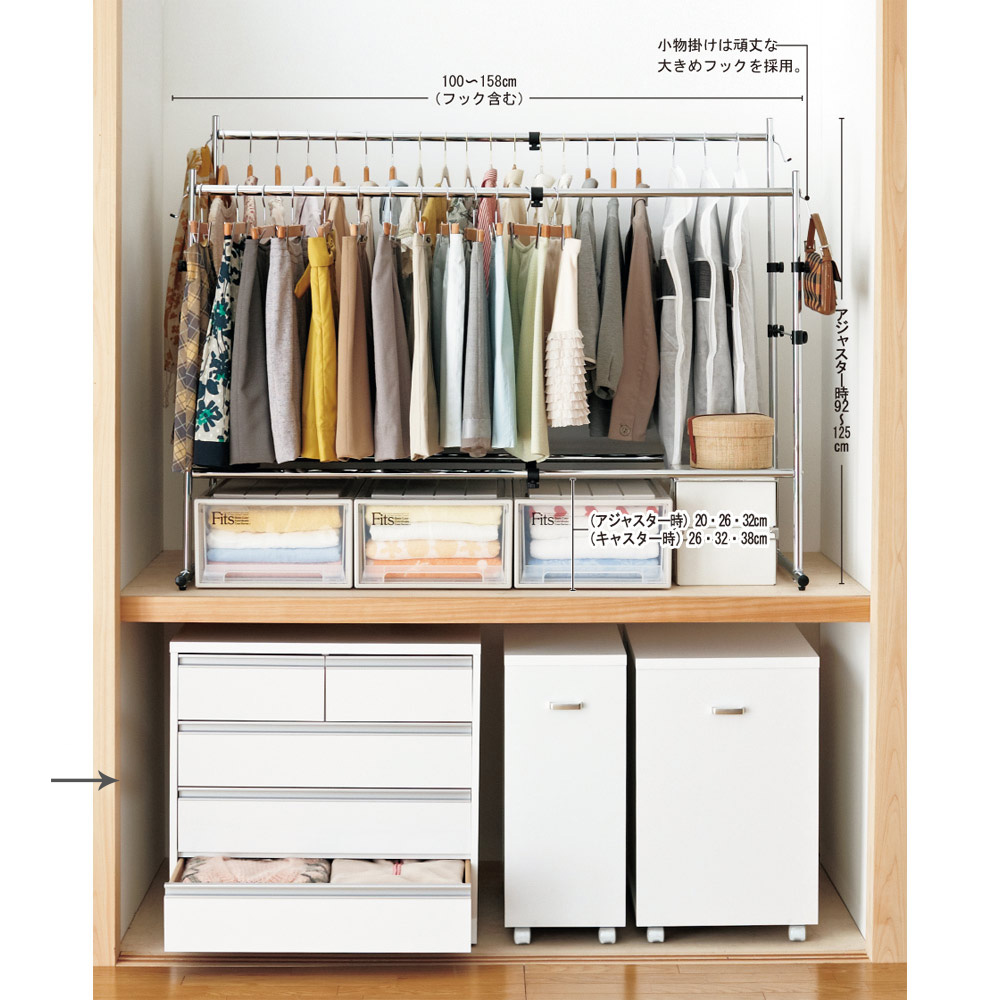 本体を移動できるので、衣類の整理整頓にも活躍します。