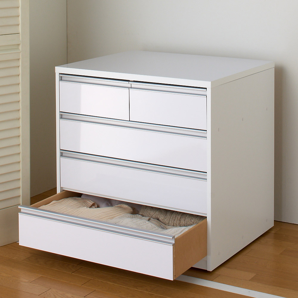 洋服が引っ掛かって引き出しが出ない!こんなお悩みに。地板が奥までしっかり入っている仕様だから大切な衣類が引っ掛かる心配なし。隠しキャスター付きで見た目もすっきり、移動も簡単。押入れ収納としても。前面・天板の光沢感が美しい、隠しキャスター付きクローゼットチェスト。◆ポイント◆◎全段に地板付きの総地板タイプ引き出し下の地板が奥まで入っているので、引き出す際衣類の巻き込みを防止します。◎キャスター付きで移動楽キャスターを取り付けなくてもご使用可能です。隠しキャスター付きで見た目をすっきりとさせました。お掃除のときに移動もラクラク。◎天板・前板はキズの付きにくい素材ポリエステル化粧合板を使用。キズに強く、汚れてもさっと拭きとれます。◎押し入れにもオススメ奥行が60cmあるので、奥行の深い押入れにも使えます。