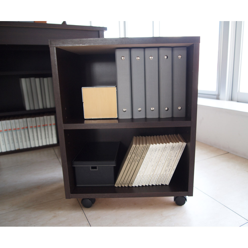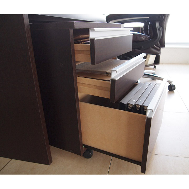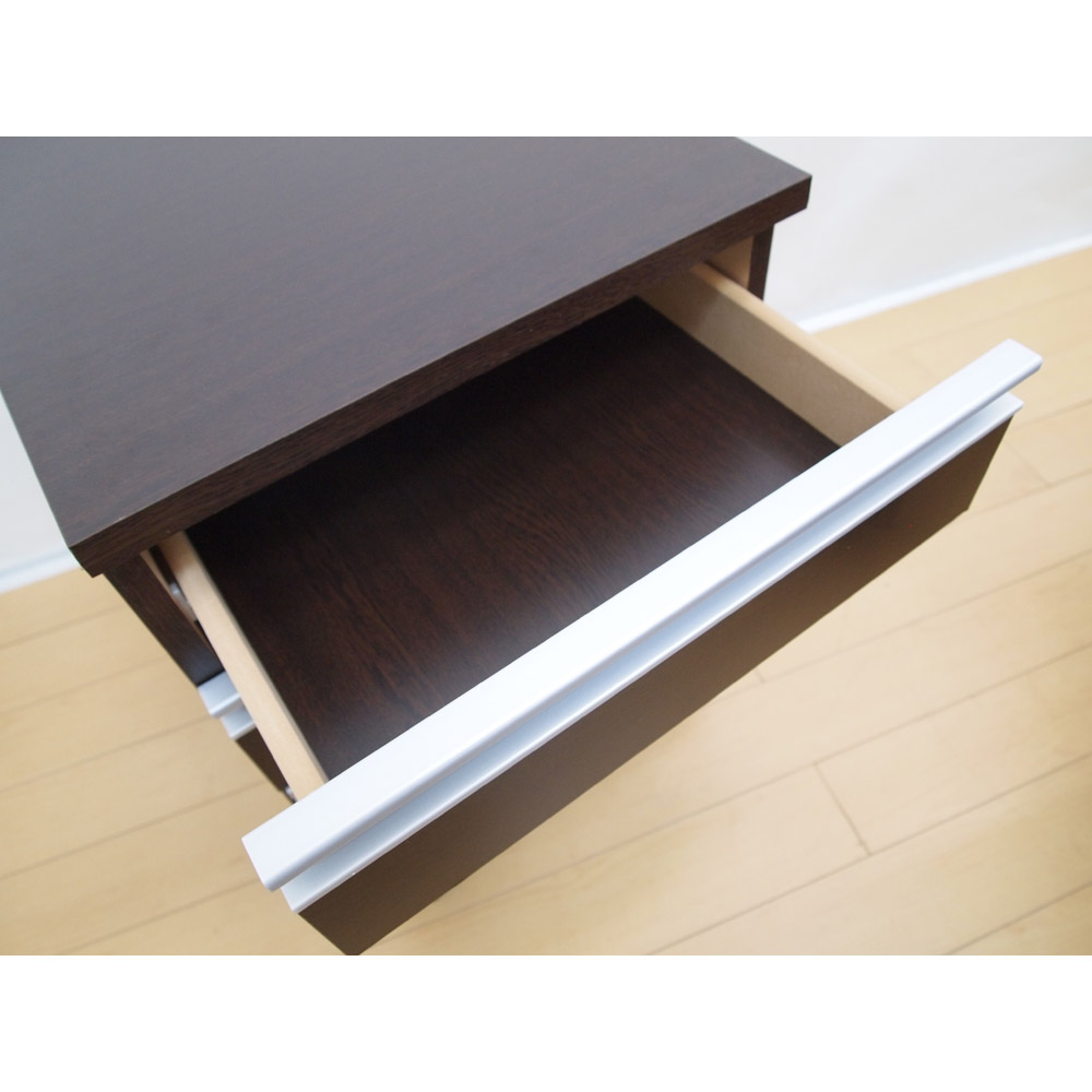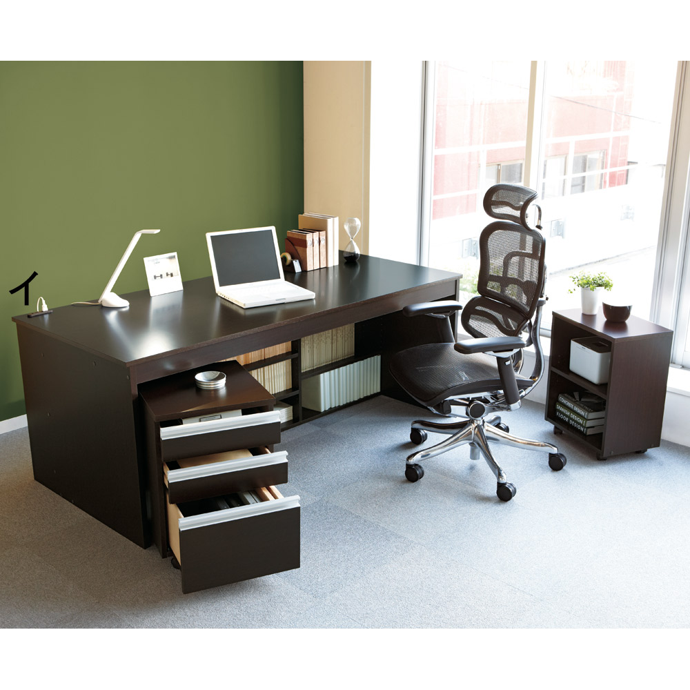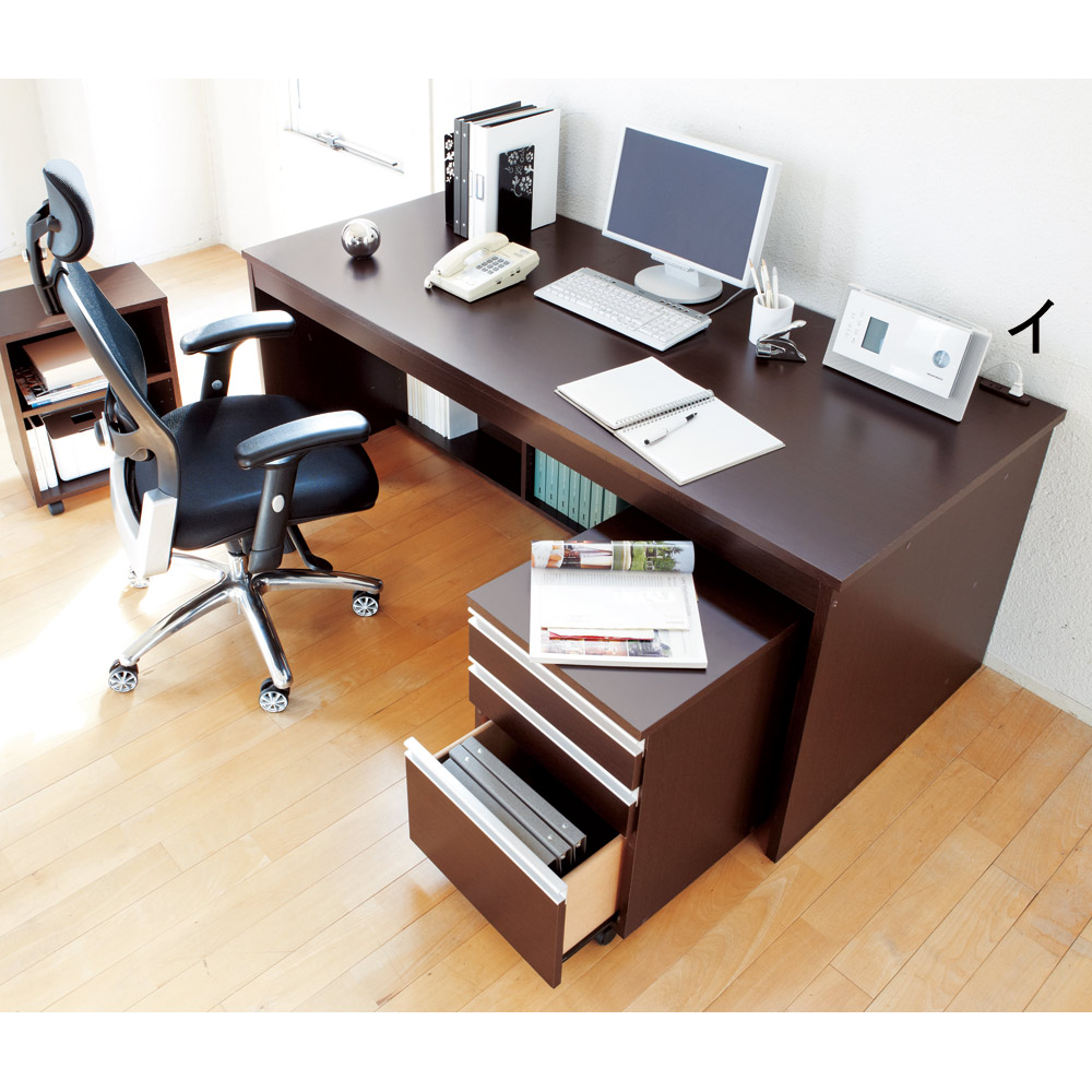 (イ)ダークブラウン チェスト、ラックともデスク下にすっきり収納可能。※写真は幅180cm3点セットです。