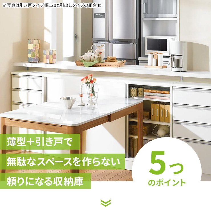 シリーズ商品組合せ例 ※写真は引き戸タイプ幅120と引出しタイプの組合せ