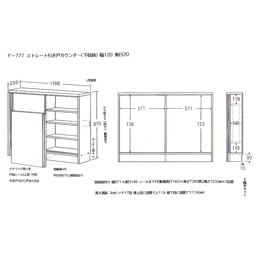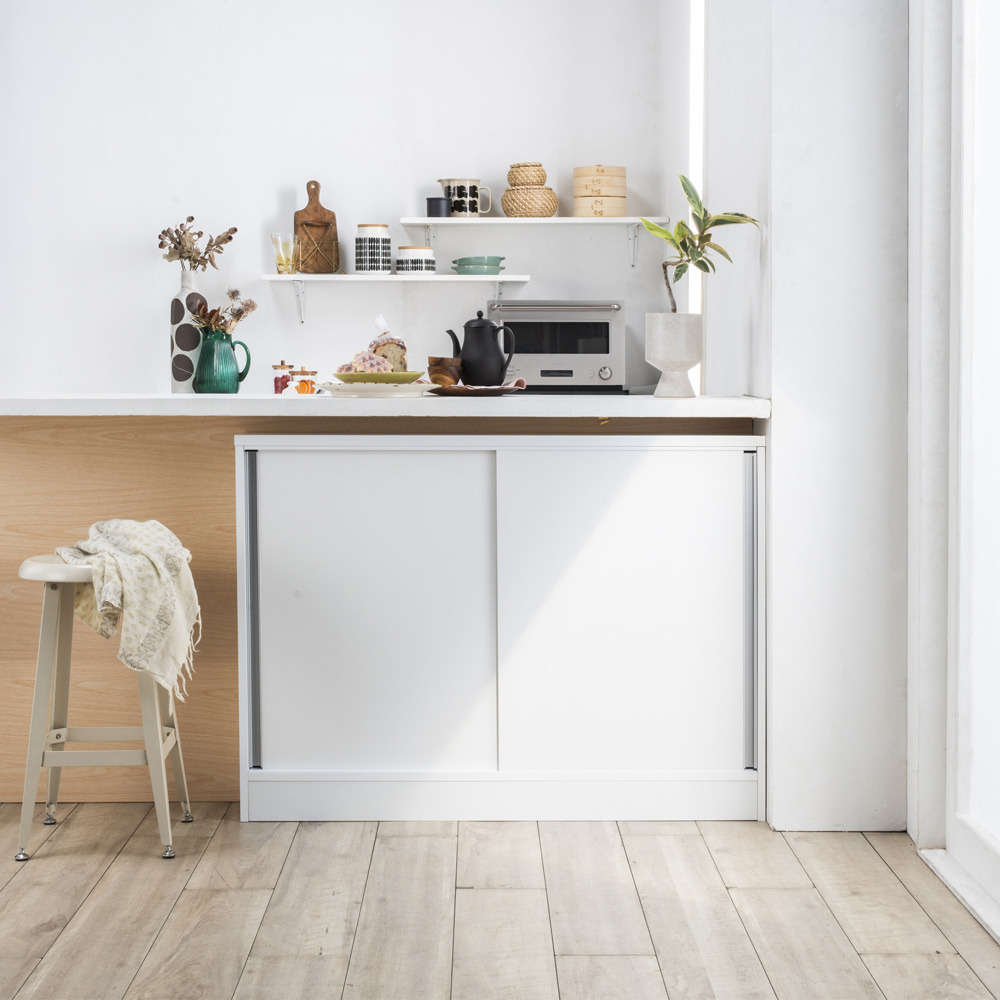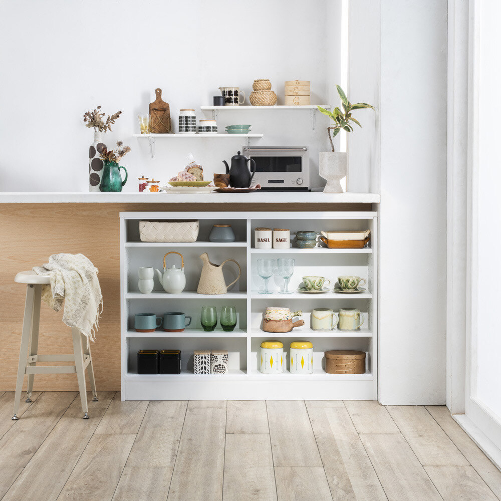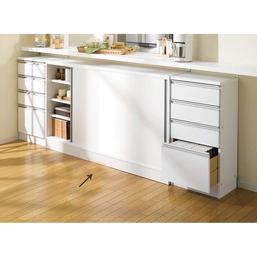 奥行20cmタイプは薄型で、狭いカウンター天板の下でもすっきり収まりやすいサイズです。 ※写真は別売りの引き出しタイプです。