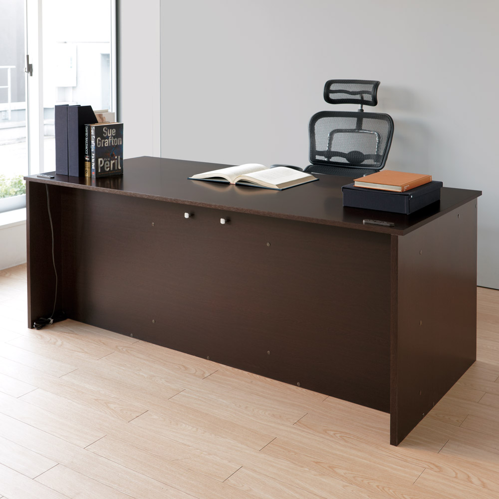[日本製] 奥行80cm!類を見ない悠々とした広々PCデスクシリーズ。机天板は頑丈な構造を採用し、収納力と便利な機能を兼ね備えた広々システムデスク。デスク下に本棚、天板両サイドにコンセントを2つ搭載。奥行80cm!広々使えるゆったり設計◆奥行きたっぷりのワークデスクで、パソコンデスクとしても大変便利です。◆パソコンやプリンターに加えて資料を広げても余裕の広さ。◆本格ホームオフィス空間が叶う、ゆったり作業ができる大容量デスクです。さらに、大量収納も叶えます。◆デスク下に大容量書棚付き。◆CDやDVD、コミックや文庫本、単行本まで入る本棚機能も兼ね備えます。◆棚板は3cmピッチで可動できます。◆オフィス、書斎、リビングやキッズルームにある本もお任せのロングランシリーズです。日々の使いやすさを考えたこまやかな配慮◆本体は裏面化粧で、社長室のような間仕切的な使い方も可能。◆本体天板の芯材にはLVL合板(平行合板)と幕板を2枚採用、これにより耐荷重も50kgで大変頑丈です。◆天板左右奥には(1500W、2口コンセントが2個)設置されています。◆本体天板には傷や汚れに強い素材を採用、高級感があります。デスク・チェスト・ラックの3点セットも別途ご用意※当ページはデスク単品の購入ページになります。セット品番購入ページは下部のおすすめ関連商品のリンクをご参照ください。
