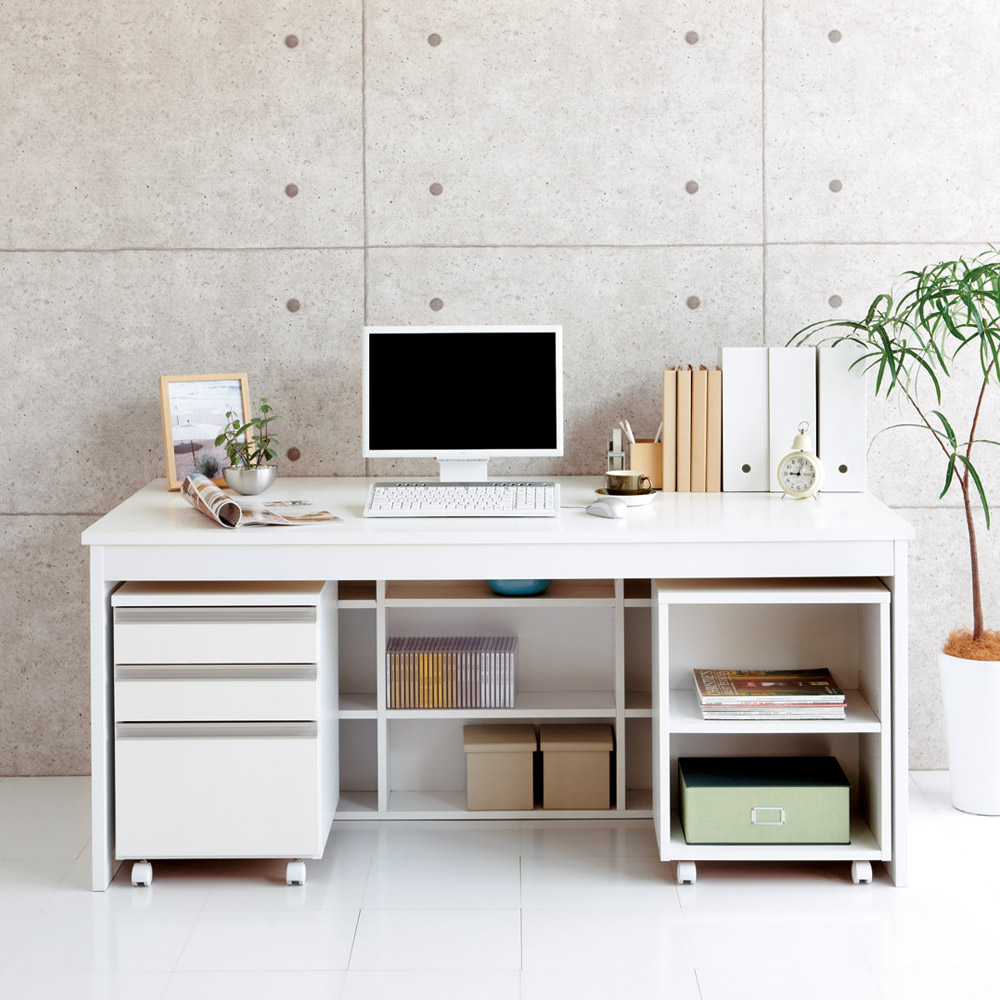 作業スペースがとても広いので、二人で並んで使用することもできます。子供部屋で学習デスクとして使っても◎ ※写真は幅180cmです。