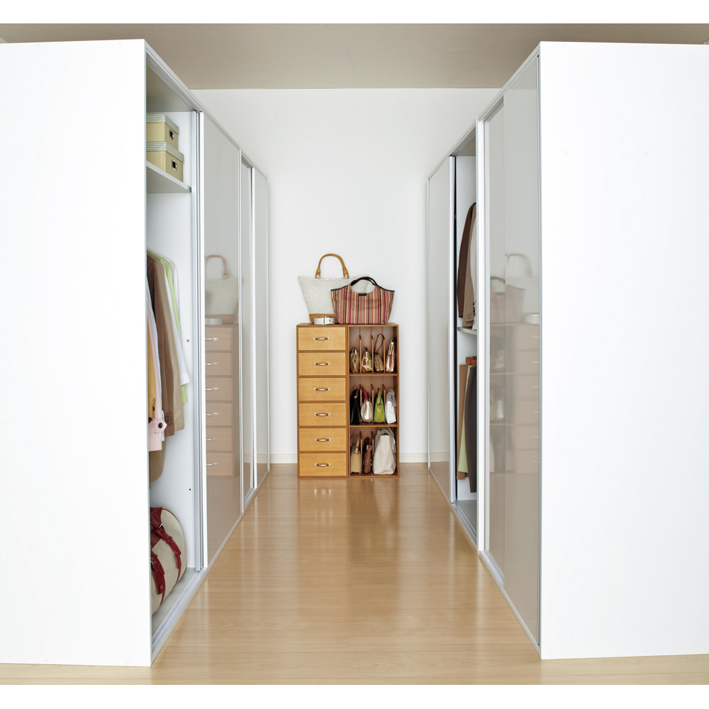 引き戸ならではの省スペース設計。寝室のワードローブにも最適です。※写真は幅120cmタイプ×2です。