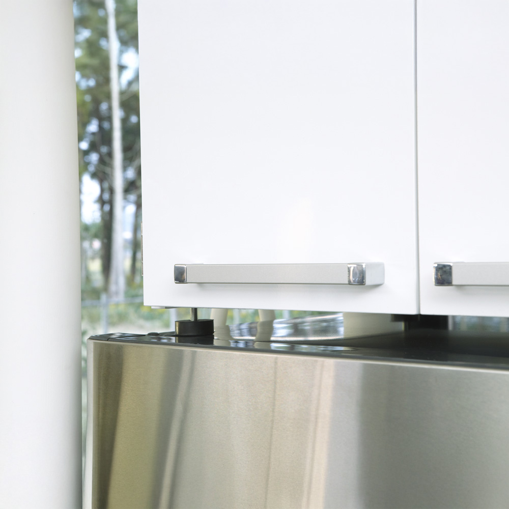 冷蔵庫の放熱を考慮した脚部は、約2cm高さ調節できるアジャスター付き。