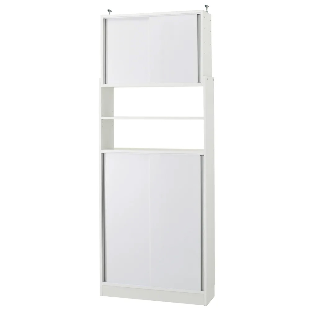 (ア)ホワイト 狭い空間でも大量収納を実現できる、薄型引き戸収納。※突っ張り対応天井高さ189〜252cm
