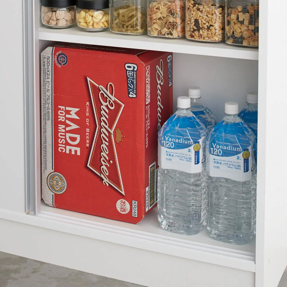 収納イメージ(ア)ホワイト 薄型でも収納力はたっぷり。(※扉を外して撮影)