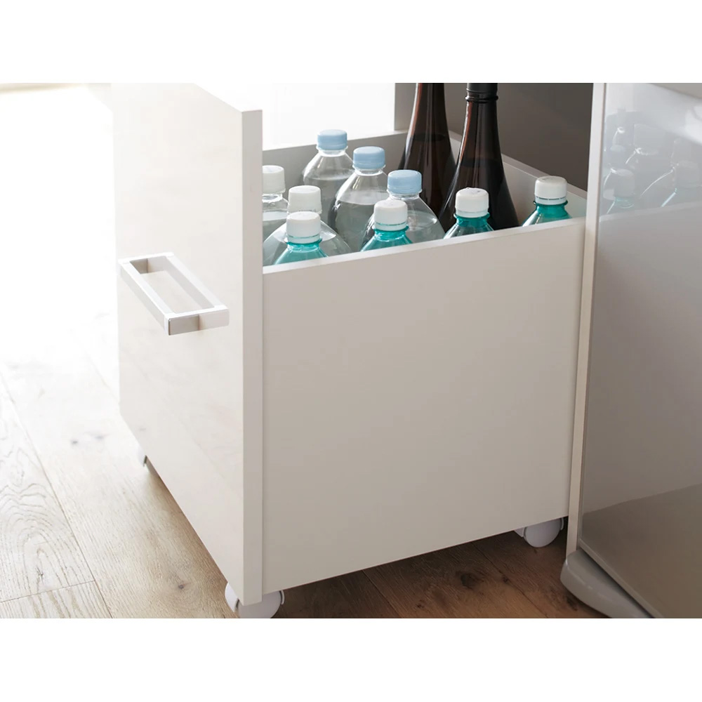 ダストボックス・お米・食品・調味料・ペットボトル・一升瓶・鍋・フライパンなど、色々な物が収納できる頑丈ワゴン付き。