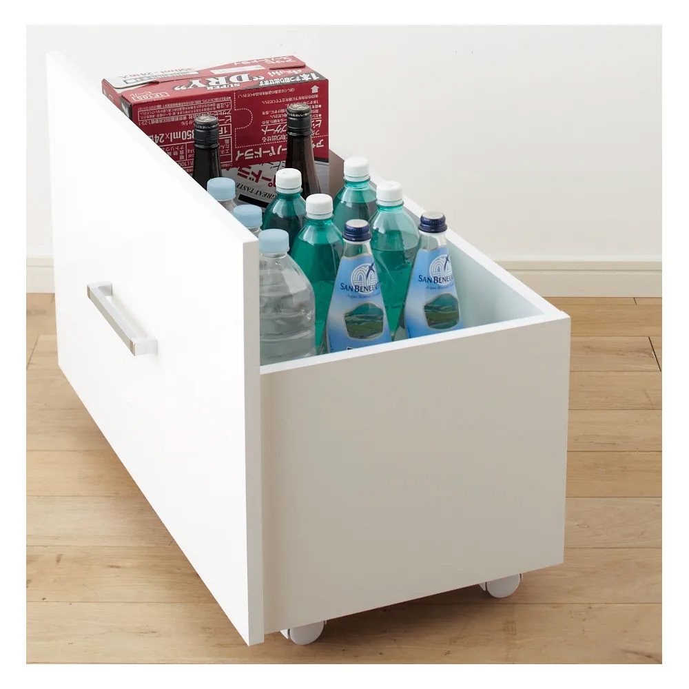 ワゴンは頑丈仕様。ペットボトルはもちろん!!一升瓶などの重さ・高さのあるものの収納にも適しています。もちろん食品ストッカーとしても。