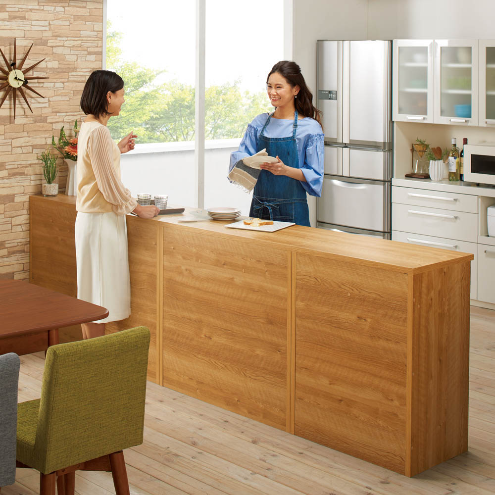 (イ)ブラウン リビング側から見ると… 裏面は化粧仕上げ。間仕切りとして使え、キッチンの丸見えも防げます。