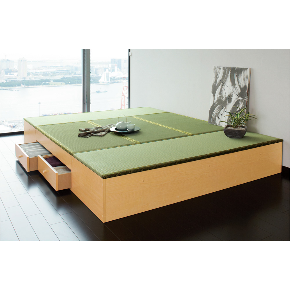 スペースやライフスタイルに合わせて組み合わせ自在の収納付き畳ユニットシリーズ。高さは31cmと45cmからセレクト。ゆったりくつろげる和の空間が手軽につくれます。うたた寝できる簡易畳ベッドとしても。〜手軽に和室の空間インテリアが実現するユニット畳〜◆くつろぎのスペースが生まれると同時にたっぷりの収納力でお部屋もすっきり。◆洋室の一画を使って和モダンなインテリアを実現できます。◆高床式置き畳なのでうたた寝やちょっとしたティータイムを過ごしてみては如何でしょう。◆うたた寝に便利な簡単な畳ベッド・収納ベッドとしてもお使い頂けます。〜収納力を確保しながら広く使える逸品〜◆充実の収納力でリビングが広々と片付きます。◆衣類収納や季節家電の収納などに便利な高床式収納です。◆お部屋を広く使いつつ、収納スペースを広げる事ができます。◆洋風のリビングでも自分だけの和室スペースを持つ事ができます。〜信頼と安心の国内工場での生産品です〜◆国内の職人がひとつずつ丁寧に仕上げた逸品です。◆ユニット畳シリーズは、ジョイントボルトでしっかり固定し、全体を一体化でき安全です。◆使わない穴は付属のキャップで隠せます。◆細部の丁寧な仕上がりなど、国産品ならではの高品質をお楽しみください。◆おしゃれなインテリア、収納家具として人気のアイデア商品です。〜新築やリフォーム、模様替えの時にもおすすめの逸品〜◆お引越しや模様替えのタイミングでスペースを便利に有効活用してみませんか?◆高価な備え付け家具やリフォームよりも、リーズナブルに新生活を始められます。◆是非普段使うものこそ、大好きなものをじっくりとご検討下さい。