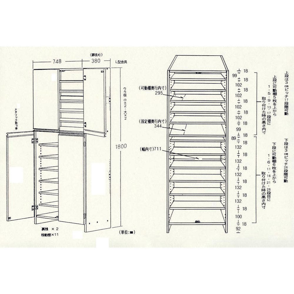 大容量のサイズ設計で紳士靴などあらゆる靴がたっぷり。内寸奥行34cmでどんな靴でも収納できる頼れる収納力。くつ箱下のちょっと置きの収納スペースなど散らかりがちな狭い玄関に便利なアイデアがいっぱい。〜スリムながらも紳士靴などあらゆる靴が余裕でしまえる収納力が魅力〜◎有効内寸奥行き34cmだから紳士靴などあらゆるシューズや靴箱が収納できるゆとり設計。◎同シリーズのミドルタイプを組み合わせれば、大容量の玄関収納シューズ棚が実現します。◎靴箱下部には空間があるので日常使いの靴や雨の日に履いた靴の一時置きをしたり、来客時にもさっと隠せて便利です。※靴箱下部内寸高さ約9cm〜玄関に馴染みやすいシンプルデザイン収納家具〜シルバーラインの取っ手がアクセントのシンプルなデザインだからご自宅のインテリアに馴染みやすく、おしゃれで素敵な玄関を演出するシューズラックです。安心と信頼の国産商品です。