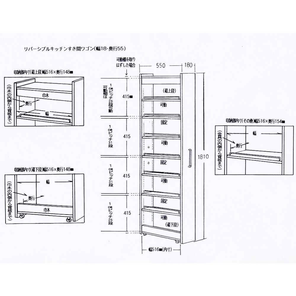 ※組立時にホワイトかシルバーの前面カラーが選べるリバーシブルタイプです。 ※写真は幅16奥行55cmタイプです。お届けは幅18cmとなります。