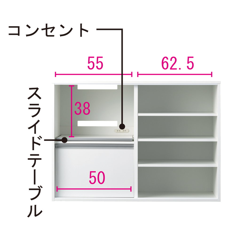 炊飯器やポットなどの蒸気を逃がせる便利なスライドテーブル付き。(1ヵ所)