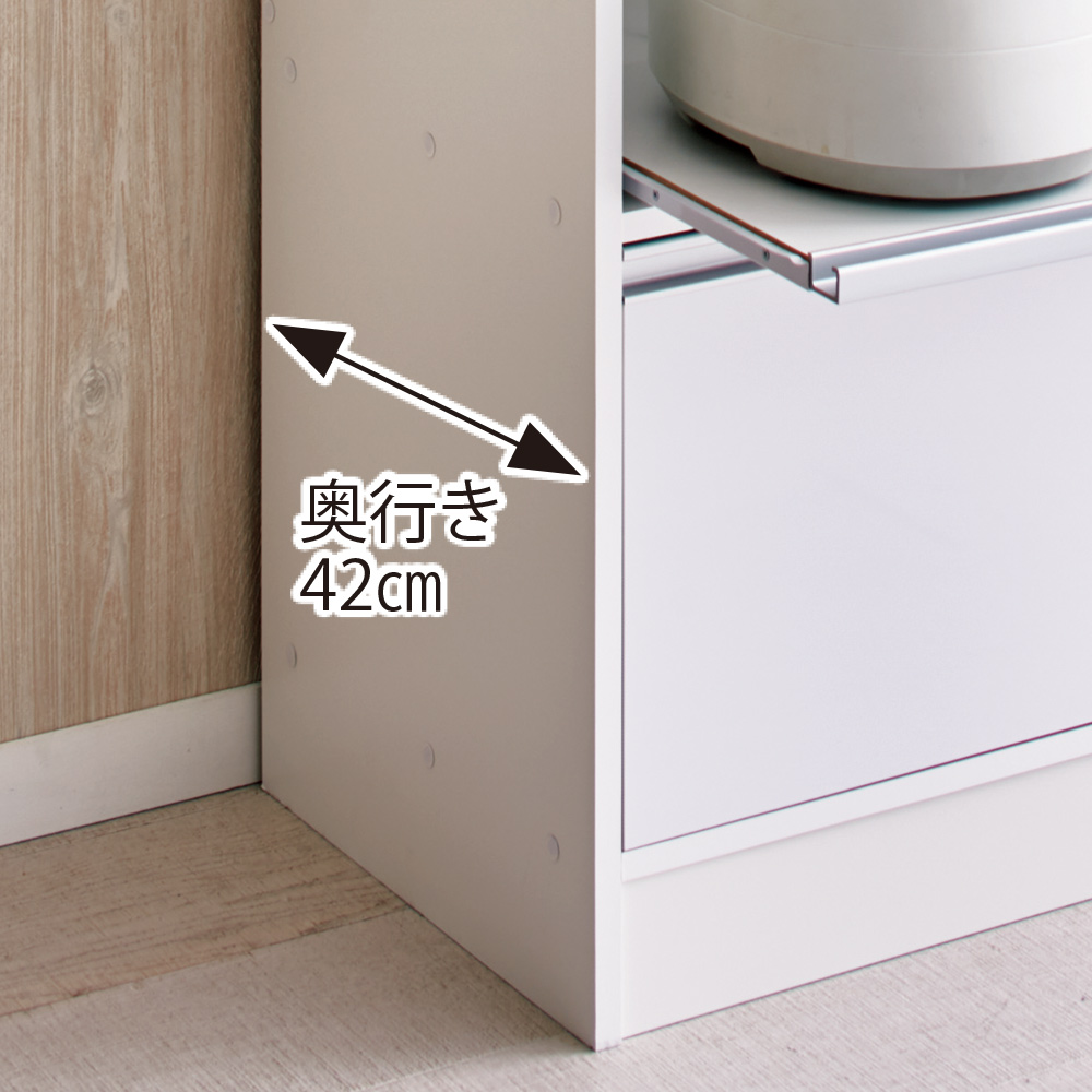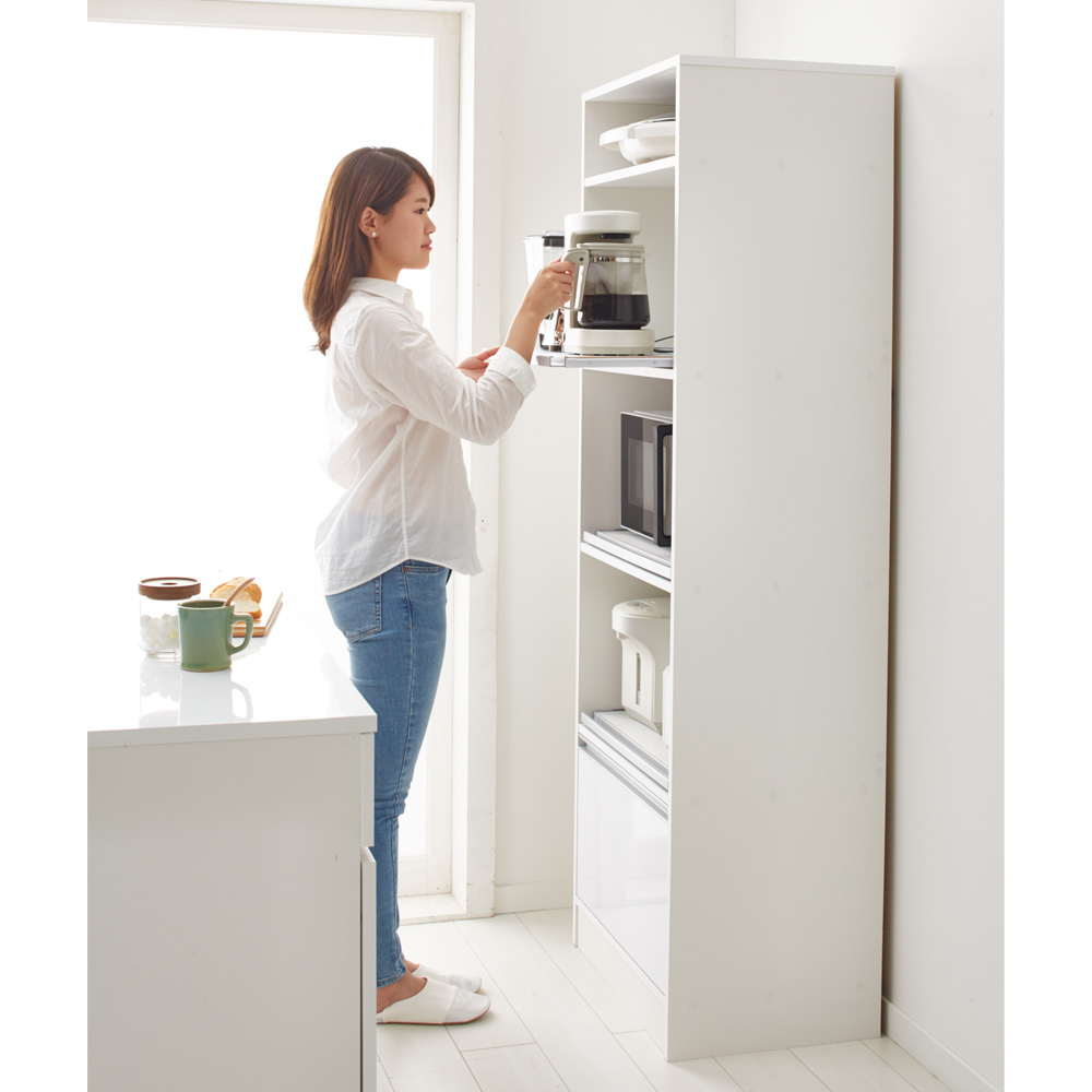 3段のスライドテーブルを装備。炊飯器やポット、電気ケトルなど蒸気の出る家電もテーブルをサッと引き出して手軽に使えます。