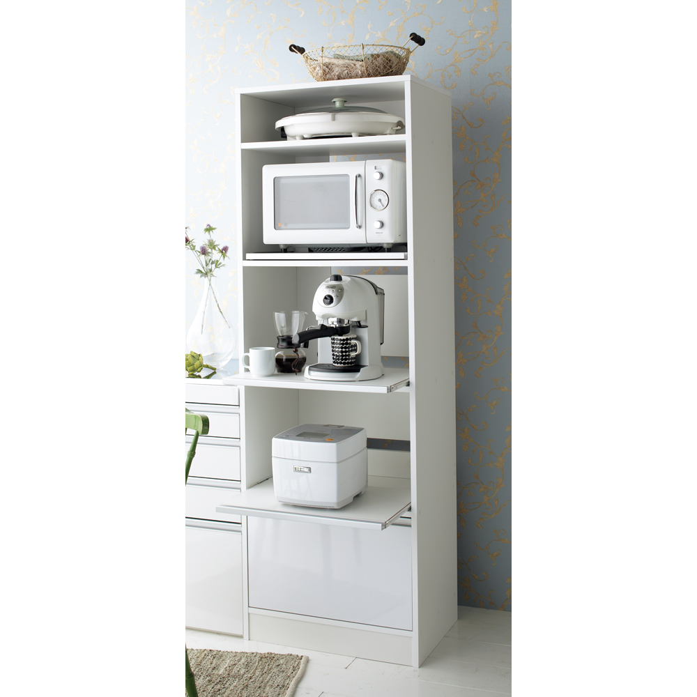 キッチン家電をまとめて収納できるオープンタイプのキッチンラック。3段のスライドテーブルがとても便利です。 ※画像は幅45cmタイプです。