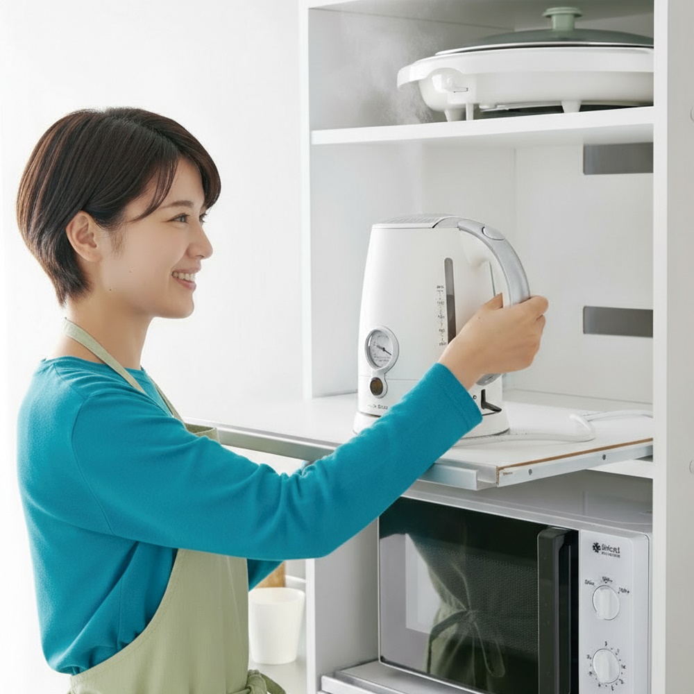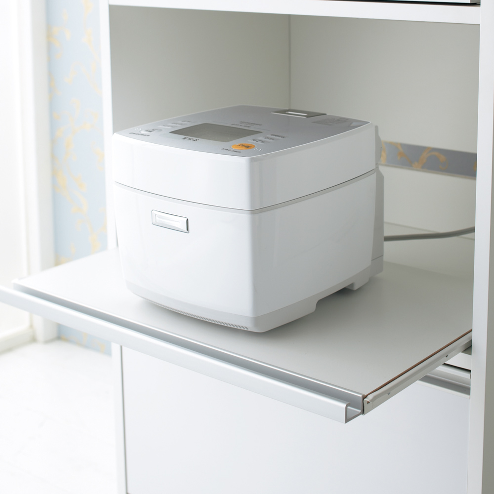 3段のスライドテーブルを装備。炊飯器やポット、電気ケトルなど蒸気の出る家電もテーブルをサッと引き出して手軽に使えます。