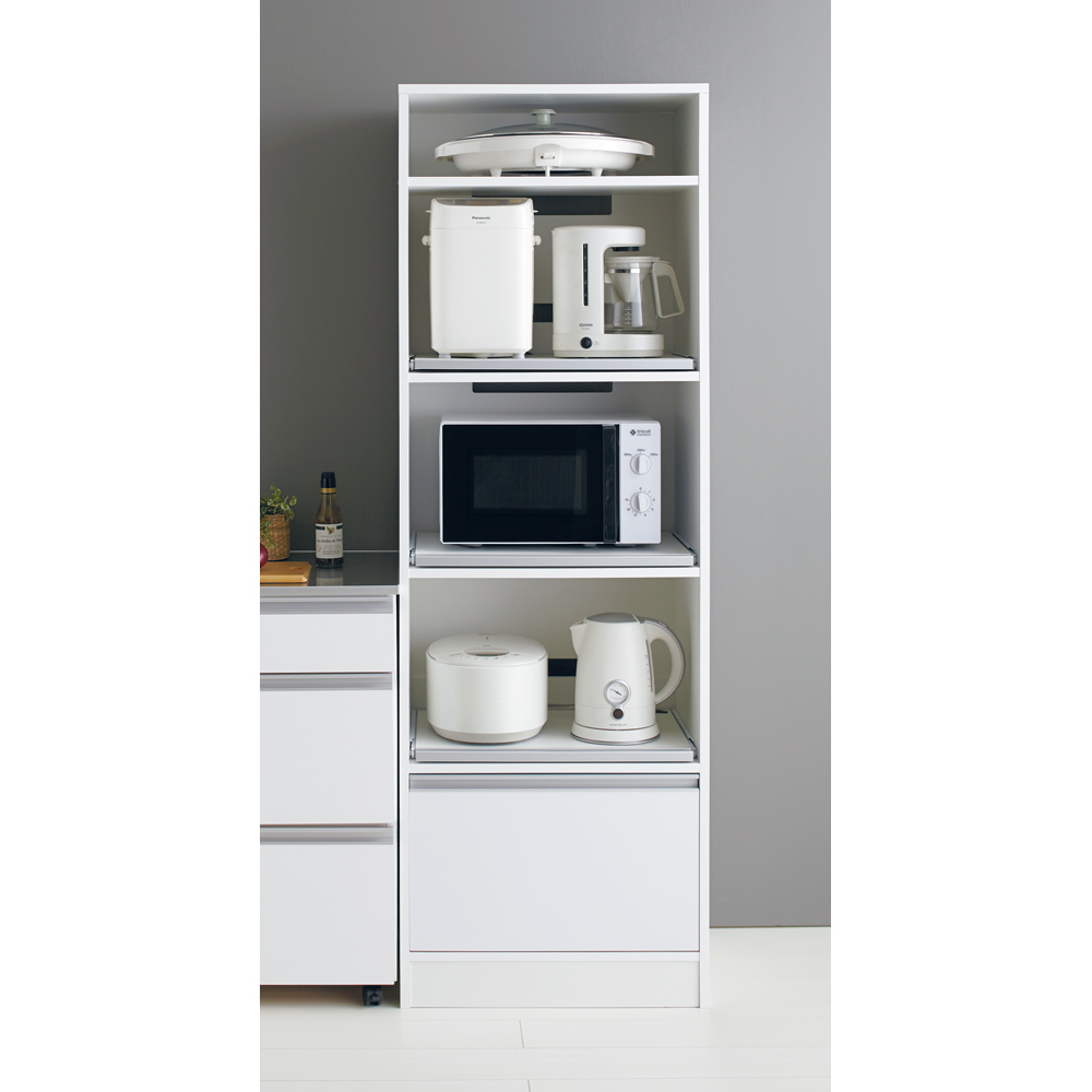 キッチン家電をまとめて収納できるオープンタイプのキッチンラック。3段のスライドテーブルがとても便利です。