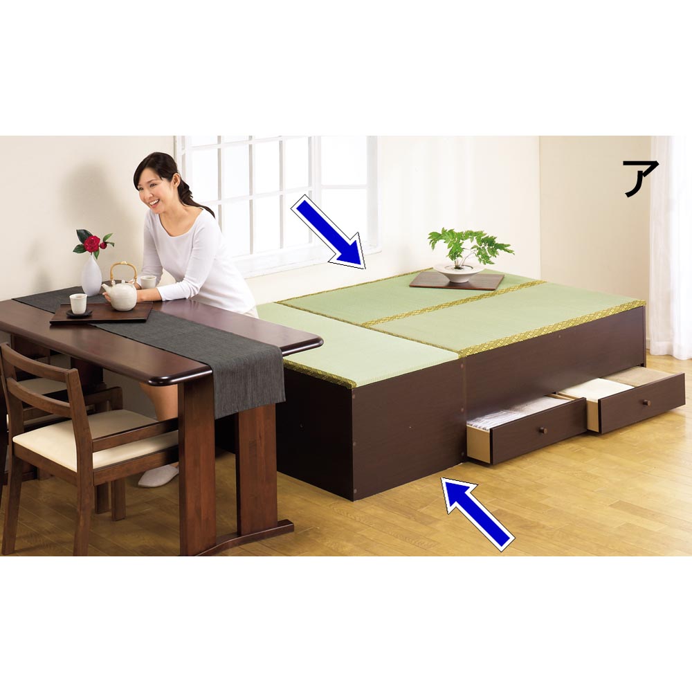 スペースやライフスタイルに合わせて組み合わせ自在の収納付き畳シリーズ。ゆったりくつろげる和の空間が手軽につくれます。高さ31cmと45cmらセレクト。〜手軽に和室の空間インテリアが実現するユニット畳〜◆くつろぎのスペースが生まれると同時にたっぷりの収納力でお部屋もすっきり。◆洋室の一画を使って和モダンなインテリアを実現できます。◆高床式置き畳なのでうたた寝やちょっとしたティータイムを過ごしてみては如何でしょう。◆うたた寝に便利な簡単な畳ベッド・収納ベッドとしてもお使い頂けます。〜収納力を確保しながら広く使える逸品〜◆充実の収納力でリビングが広々と片付きます。◆衣類収納や季節家電の収納などに便利な高床式収納です。◆お部屋を広く使いつつ、収納スペースを広げる事ができます。◆洋風のリビングでも自分だけの和室スペースを持つ事ができます。〜信頼と安心の国内工場での生産品です〜◆国内の職人がひとつずつ丁寧に仕上げた逸品です。◆ユニット畳シリーズは、ジョイントボルトでしっかり固定し、全体を一体化でき安全です。◆使わない穴は付属のキャップで隠せます。◆細部の丁寧な仕上がりなど、国産品ならではの高品質をお楽しみください。◆おしゃれなインテリア、収納家具として人気のアイデア商品です。〜新築やリフォーム、模様替えの時にもおすすめの逸品〜◆お引越しや模様替えのタイミングでスペースを便利に有効活用してみませんか?◆高価な備え付け家具やリフォームよりも、リーズナブルに新生活を始められます。◆是非普段使うものこそ、大好きなものをじっくりとご検討下さい。