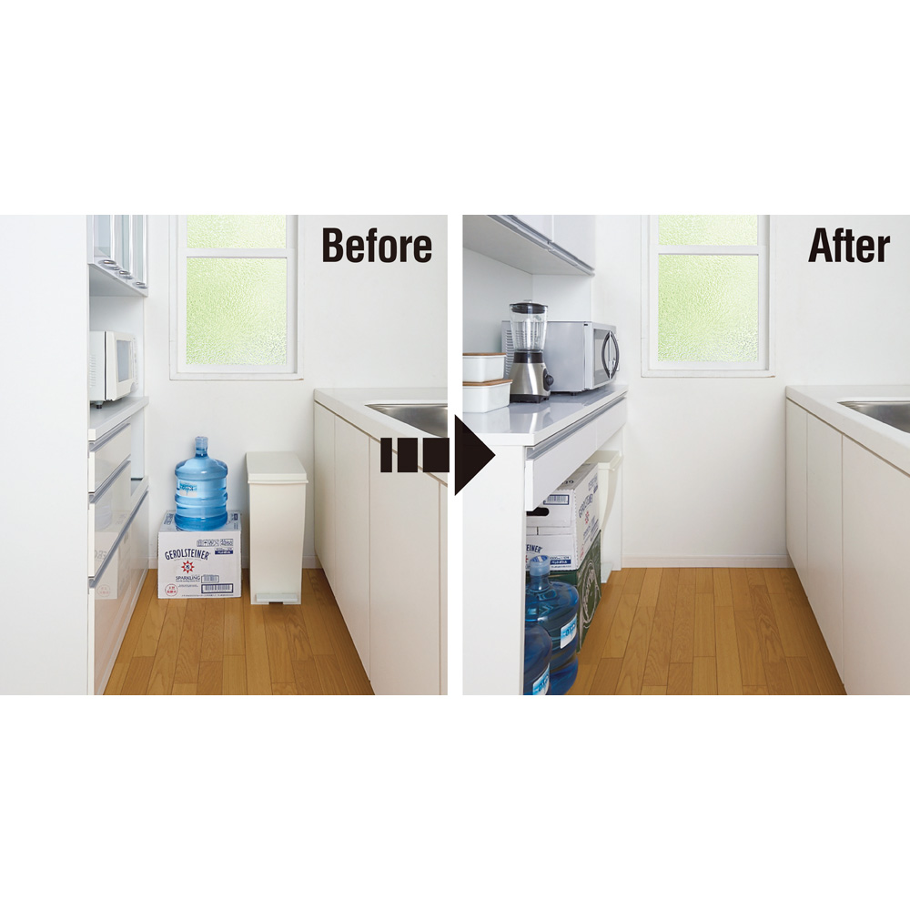 After 下オープン部にすっぽり収納!!キッチン通路がスッキリして広々使えます。
