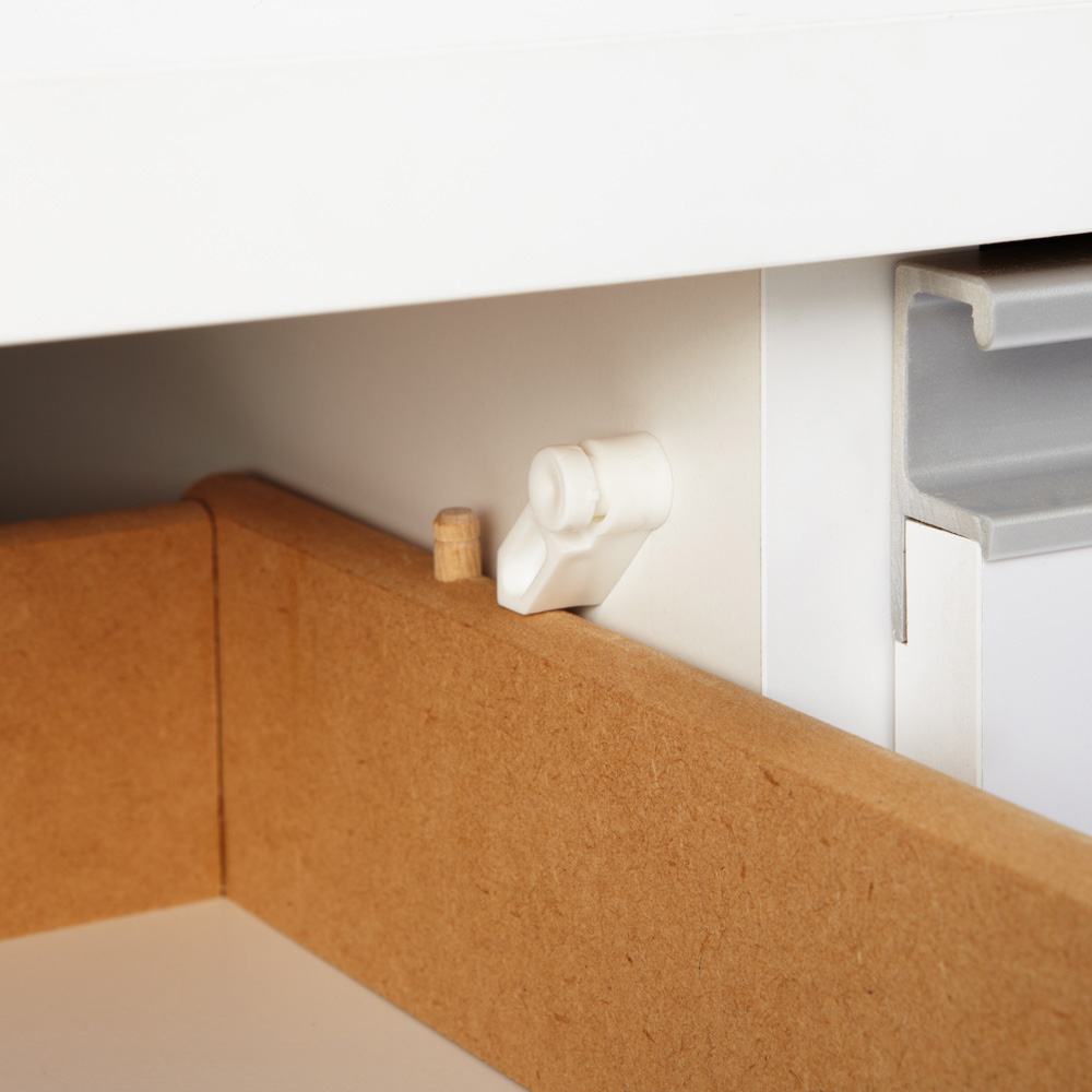 引き出しには抜け落ち防止のストッパー付き。 引き出し耐荷重:約10kg