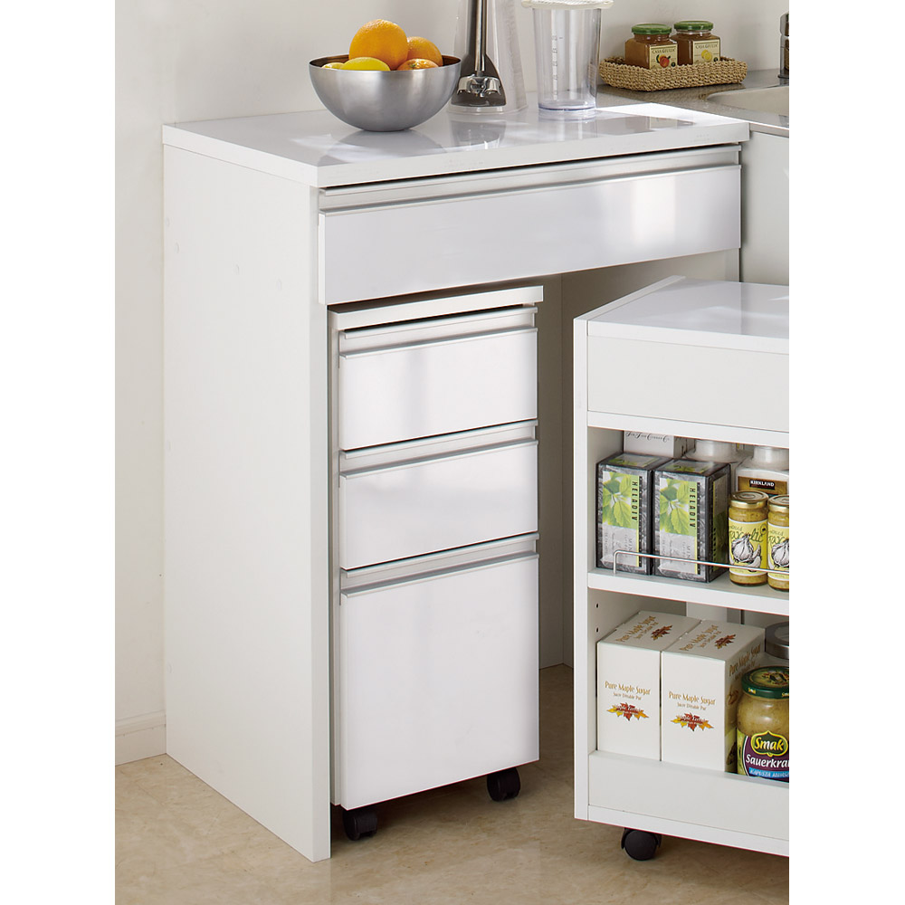 チェストとワゴンはデスク内に一体収納。 ※お届けはカウンターデスクのみです。(チェスト・ワゴンは別売りとなります)