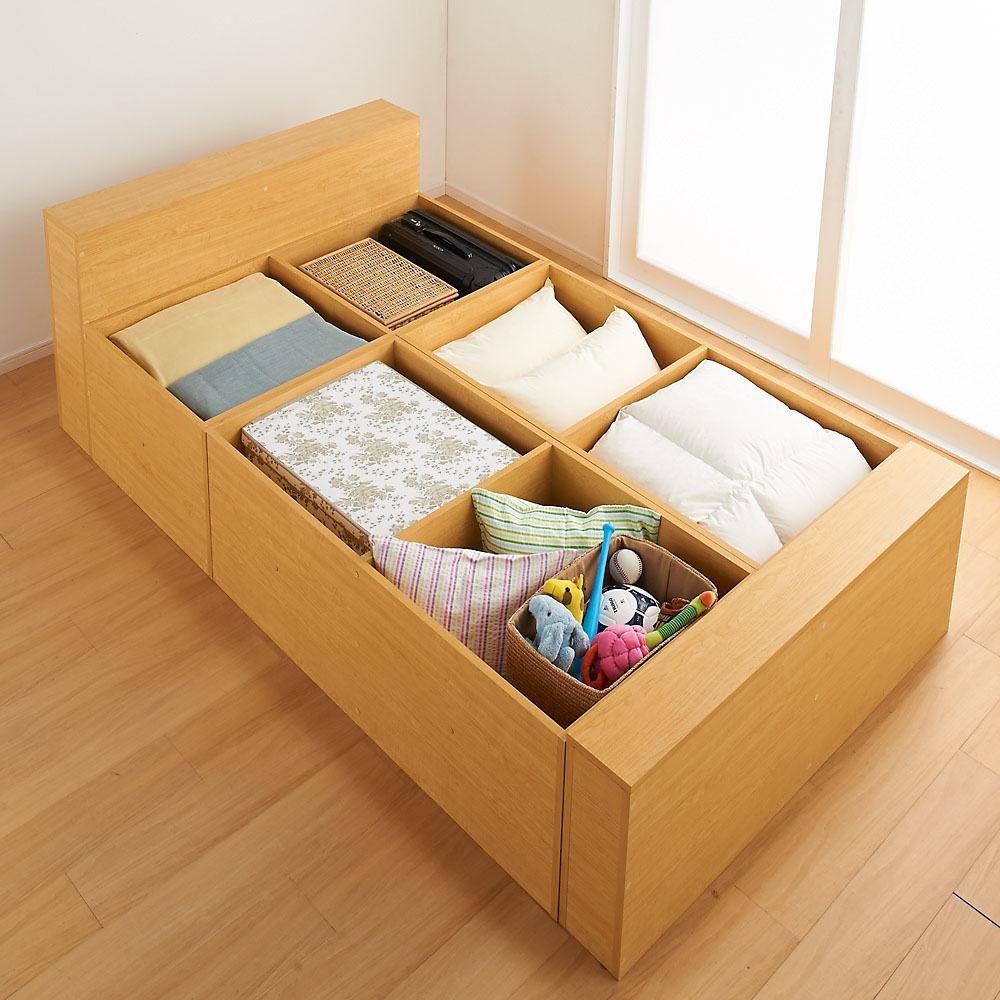 ヘッド部・フット部も収納スペースになります。 ※ベッドセットは3畳セット(1畳×3)+専用パーツになります。
