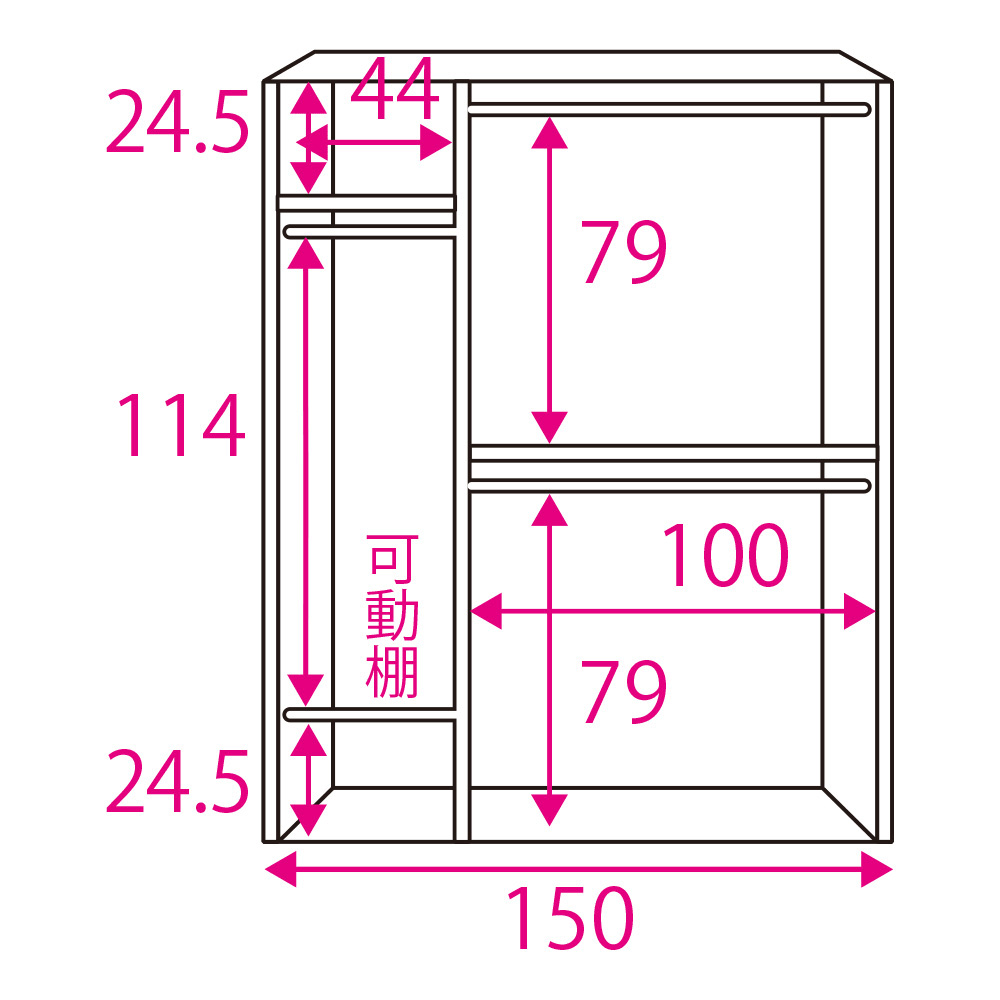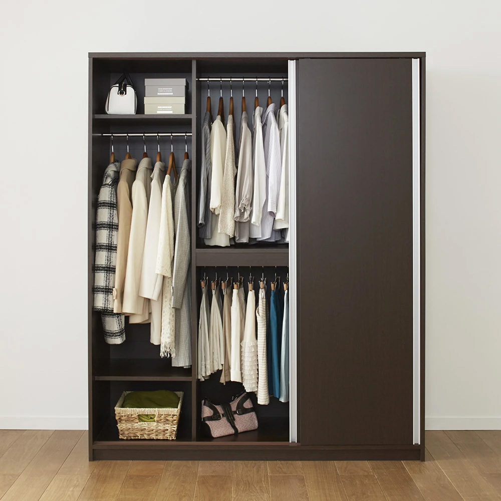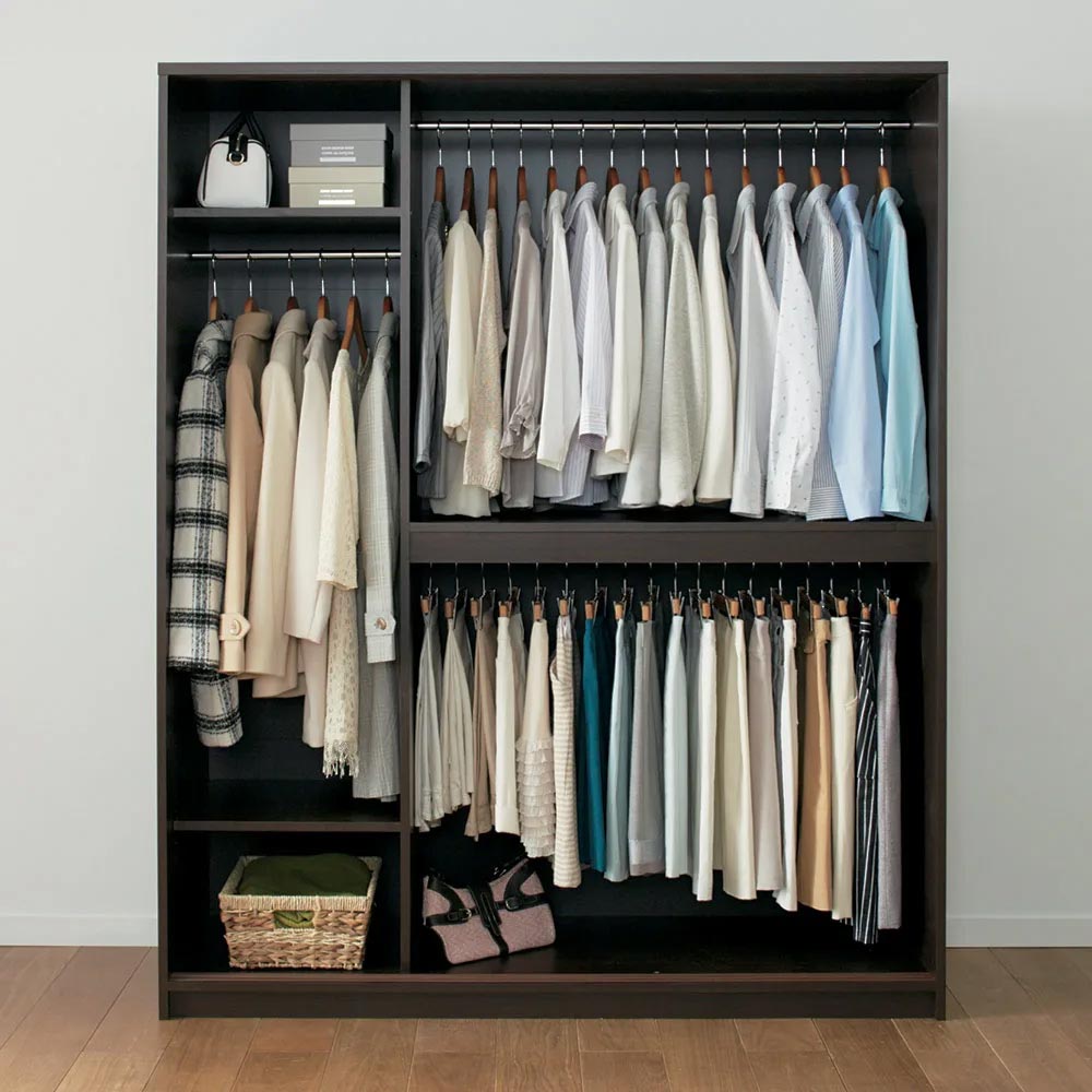 (イ)ダークブラウン(引き戸を外した状態) 上下2段に収納できます。丈の長いコートの収納にも。