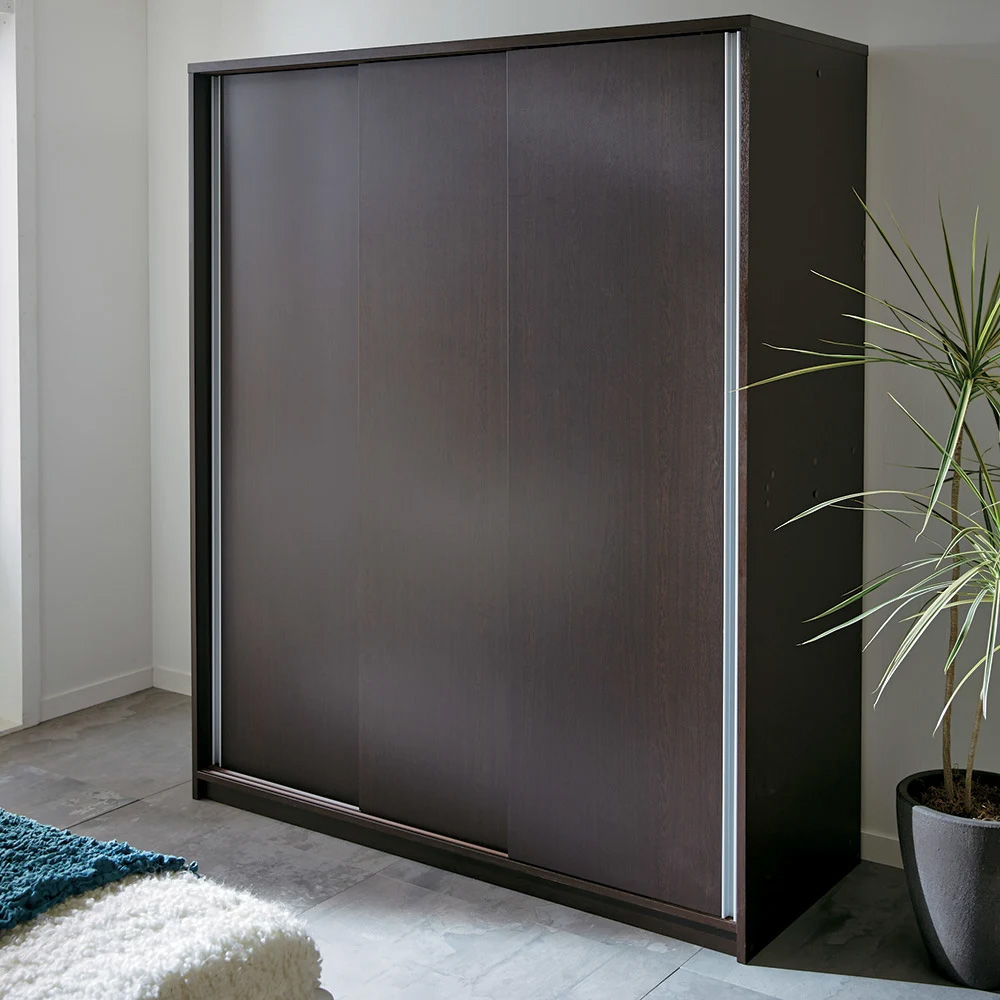 (イ)ダークブラウン 高さ約180cmの大容量。押し入れ代わりの頼れる収納庫です。扉は引き戸なので開閉に場所を取りません。