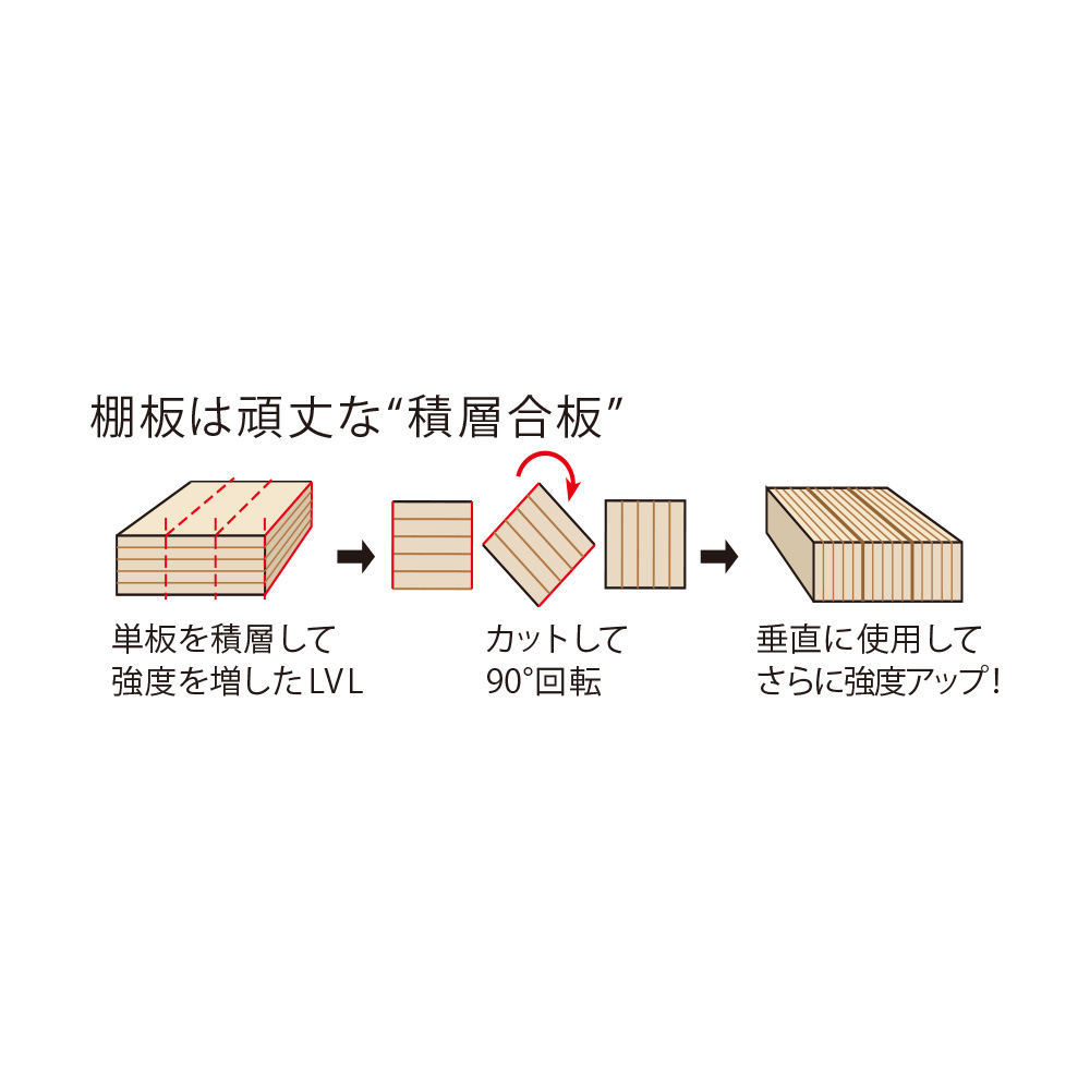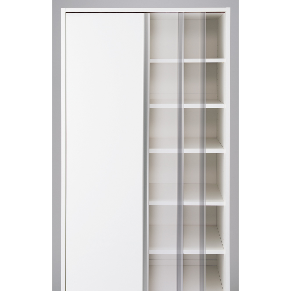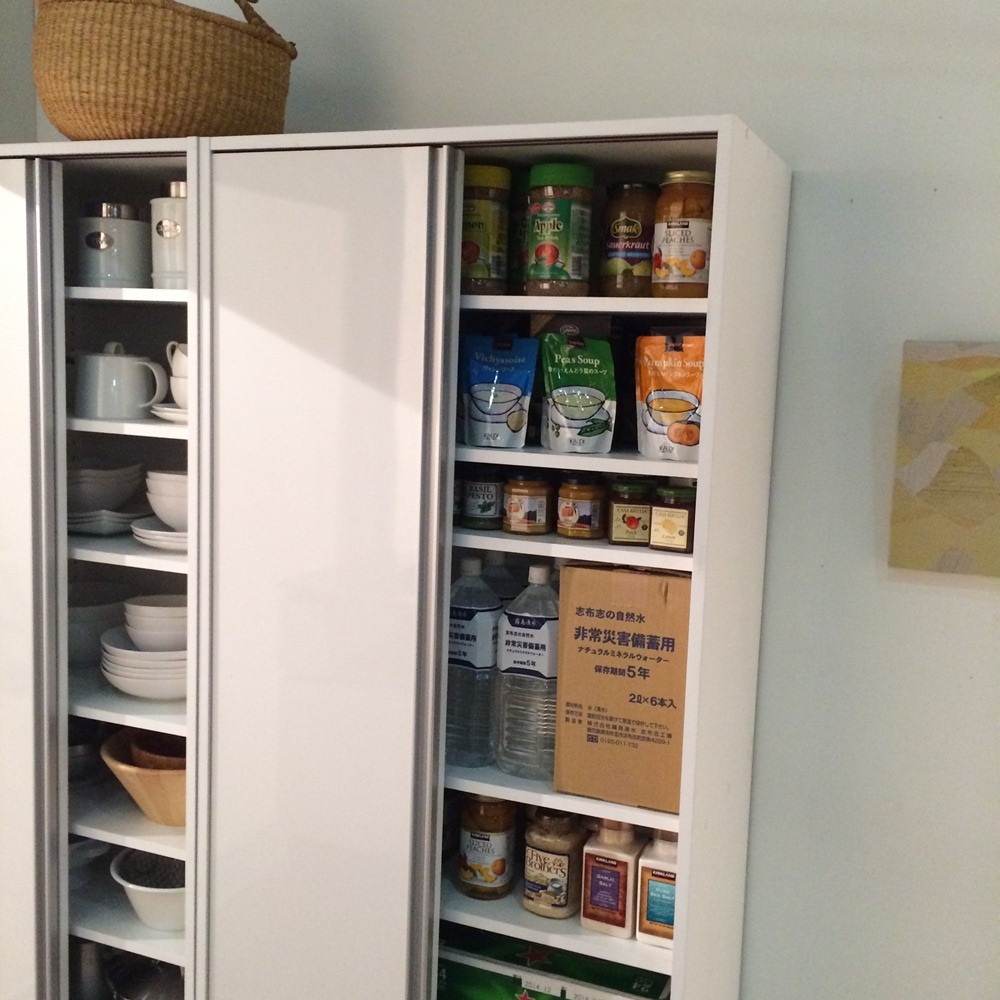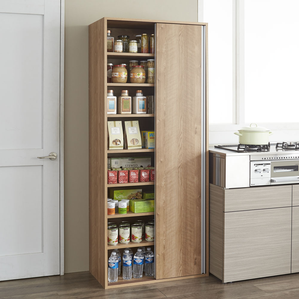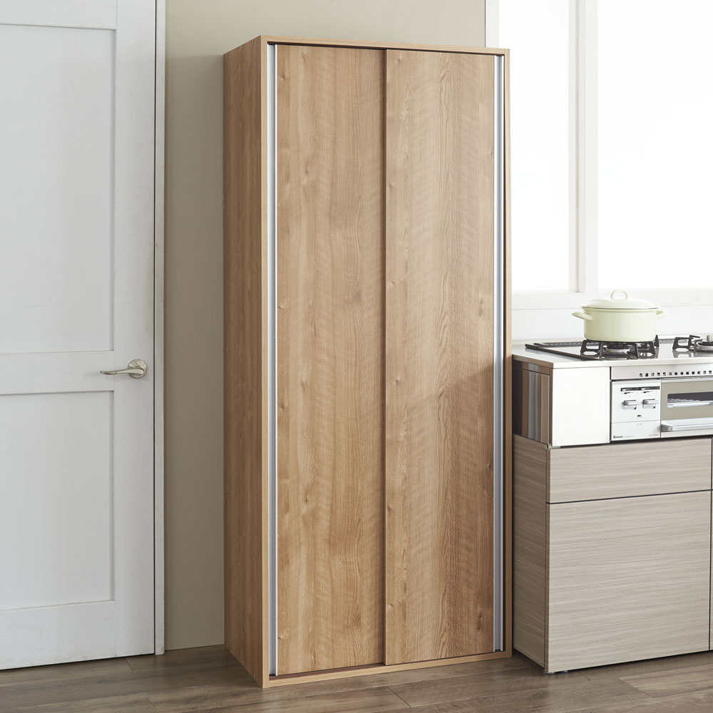 飲料のまとめ買いや防災備蓄を大量収納できる全体耐荷重約100kgの頑丈キッチン収納家具。食器や食品を入れた収納棚を省スペースな引き戸扉ですっきり隠せて、造り付けパントリーのようなデザインの人気のキッチンボード。おしゃれなシステムキッチンになじむ人気のデザインでリフォームにもおすすめです。使用例(ブラウン幅76cm)全体耐荷重100kg!大量収納できる頑丈ストッカー飲料のまとめ買いや防災備蓄を安心して収納できる、スリムなキッチンすき間収納。省スペースな引き戸扉ですっきり隠せば、まるで造り付けパントリーのよう。収納イメージ(ホワイト幅76cm お届け商品のサイズ)パントリーのようにたっぷり収納防災備蓄品などから日常使いの食器やキッチン用品まで、たっぷりしまえる省スペース設計の収納庫。サイズは選べる4タイプ。幅46cm・61cm・76cm・91cmからお選びください。使用例(ホワイト 左から幅61cm・76cm)狭い場所でも使いやすい引き戸の扉開閉スペースを取らない引き戸は、狭いキッチンでも出し入れしやすく、2人でキッチンで作業していてもスムーズに出し入れできます。たっぷり収納しても、中のごちゃつきを引き戸の扉でサッと隠すことも。飲料ストックを箱ごと収納2Lペットボトル6本入りのケースが箱ごと収納できるサイズ設計(棚板奥行34cm)。キッチンに置くと雑然と見える箱入りの飲料ストックを、箱ごと置いておけます。重い物も置ける頑丈な棚板棚板は、1段あたり約20kgまでの重量に耐えられる仕様です。積層して強度を増した、頑丈な「積層合板」を使っています。全体耐荷重は約100kg。その実力を確認するために、第三者公的機関で表示耐荷重の約2倍(合計200kg)を重りを使った「耐荷重試験」を実施。異常なしと認められました。棚板は高さ調節可能3cm間隔で高さ調節ができる、可動棚板6枚付き。ホワイト幅90cm美しい光沢素材はお手入れも簡単一般的なシステムキッチンのインテリアにマッチするように、光沢仕上げのポリエステル化粧合板を使用。水ハネや汚れも簡単に拭き取れます。スムーズに開閉できる引き戸裏に滑車が付いているので、軽い力でもなめらかに開閉ができます。幅76cmタイプ(左からホワイト・ブラウン)安心と信頼の国内生産品熟練の家具職人がひとつずつ丁寧に仕上げたキッチン収納・食品ストッカー・食器棚です。細部の丁寧な仕上がりなど、国産品ならではの高品質をお楽しみください。引っ越しやリフォームのタイミングにもおすすめ。