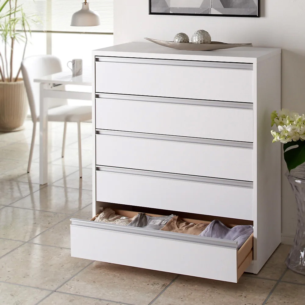 一目で見渡せる、ワイドな収納力。隠しキャスター付きのチェストで見た目すっきり、移動ラクラク!シリーズで幅60cm、幅90cm、たっぷり収納できる幅120cmを揃えました。押入れやウォークインクローゼットの空いたスペースの設置もおすすめです。一目で見渡せるワイドな収納力!たっぷり収納しても軽く開け閉めできるストッパー付き引出を全段に採用した衣類収納家具(タンス)。隠しキャスター仕様で見た目はすっきり、移動がラクラク。お掃除や模様替え、衣替え時に簡単に動かせるので大助かり!引き出し内部に取っ手の金具が出っ張らない、衣類にやさしい造りです。スタイリッシュな光沢感を演出するデザイン前面は「ハードコート紙」を使用。通常の強化紙に比べ強度があります。横幅いっぱいのアルミ調の樹脂取っ手も持ちやすく、使いやすい設計。スタイリッシュな光沢感を演出するデザインです。安心の日本製、国産家具国内の熟練の家具職人が、一つ一つ心を込めて丁寧に仕上げております。長く使うものだから、拘り抜かれた高品質の商品をお楽しみください。商品は組み立てが必要です。組み立て自体は簡単ですが、組立の苦手な方は、有料の組み立てサービスをご利用いただけます。ご希望の場合はご注文時にご指定ください。