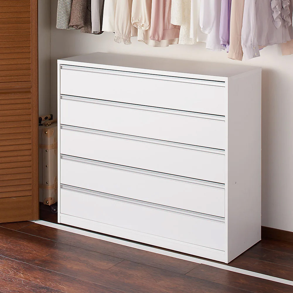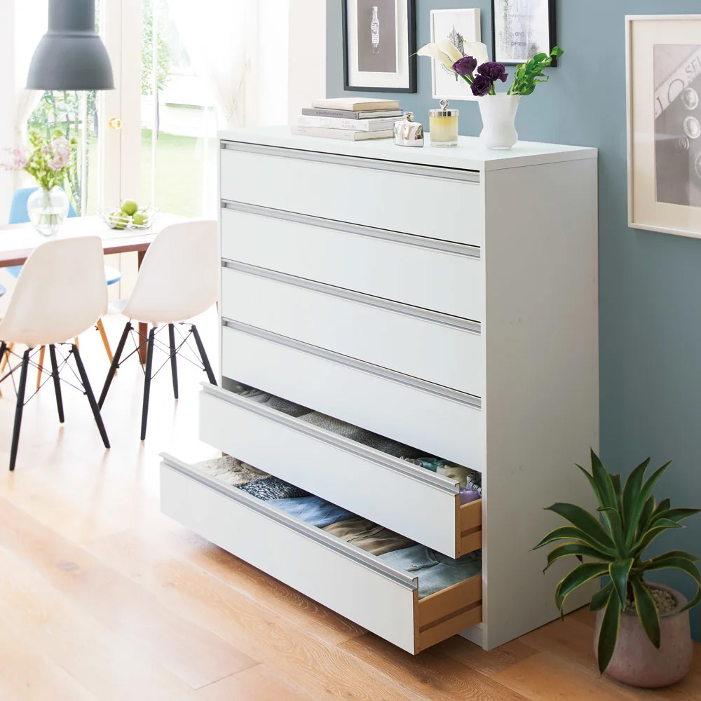 一目で見渡せる、ワイドな収納力。隠しキャスター付きのチェストで見た目すっきり、移動ラクラク!シリーズで幅60cm、幅90cm、たっぷり収納できる幅120cmを揃えました。押入れやウォークインクローゼットの空いたスペースの設置もおすすめです。一目で見渡せるワイドな収納力!たっぷり収納しても軽く開け閉めできるストッパー付き引出を全段に採用した衣類収納家具(タンス)。隠しキャスター仕様で見た目はすっきり、移動がラクラク。お掃除や模様替え時簡単に動かせるので大助かり!引き出し内部に取っ手の金具が出っ張らない、衣類にやさしい造りです。スタイリッシュな光沢感を演出するデザイン前面は「ハードコート紙」を使用。通常の強化紙に比べ強度があります。横幅いっぱいのアルミ調の樹脂取っ手も持ちやすく、使いやすい設計。スタイリッシュな光沢感を演出するデザインです。安心の日本製、国産家具国内の熟練の家具職人が、一つ一つ心を込めて丁寧に仕上げております。長く使うものだから、拘り抜かれた高品質の商品をお楽しみください。商品は組み立てが必要です。組み立て自体は簡単ですが、組立の苦手な方は、有料の組み立てサービスをご利用いただけます。ご希望の場合はご注文時にご指定ください。