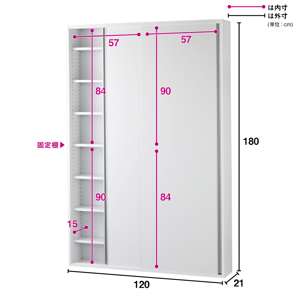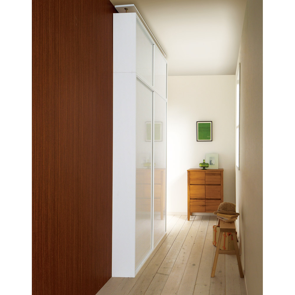 美しく全部隠せる、大量収納が可能な壁面収納書棚。光沢仕上げの前面の引き戸扉が高級感を与え、狭い空間でも省スペースの開閉を実現。設置場所を選ばないシンプルなデザインと、多彩なサイズバリエーションが人気の、おすすめの引き戸扉付き大量収納壁面収納庫です。扉の光沢が美しい、壁に溶け込むシンプルスライド扉収納庫◆文庫や新書、CD・DVDなど、どんどん増え続ける収納物をキレイすっきりと大量収納ができるブックシェルフラックです。◆引き戸のスライド式扉は、お手入れしやすく清潔感のある光沢素材を採用。◆雑多になりがちな本棚も、扉を閉じればすっきりと全部隠せ、まるで壁に同化しているような美しいただずまいとなります。◆取っ手はフラットタイプで、洗練されたシルバーアクセントに。◆棚板は中央1枚が固定棚で、それ以外の棚板は3cm単位の高さで調節できます。◆シンプルで飽きのこないデザインは、SOHOをはじめ、リビングルームやベッドルーム、子供部屋収納でもオススメです。◆CDラック・DVDラック・キッチンラックなど、用途もさまざま。◆シリーズには、奥行薄型・深型の2タイプ×幅3サイズ×各突っ張り式の上置きをラインナップ。◆シリーズを組み合わせれば、統一感ある天井いっぱいの壁面収納が完成します。◆あふれる収納物をすっきりと隠して収納できる国産のスライド本棚、ぜひお試しください。