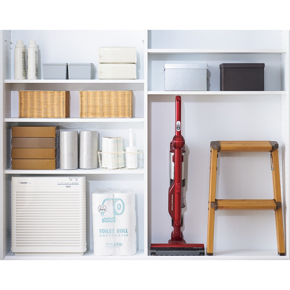 中央1枚は固定棚。それ以外の棚板は3cm単位の高さで調節できます。