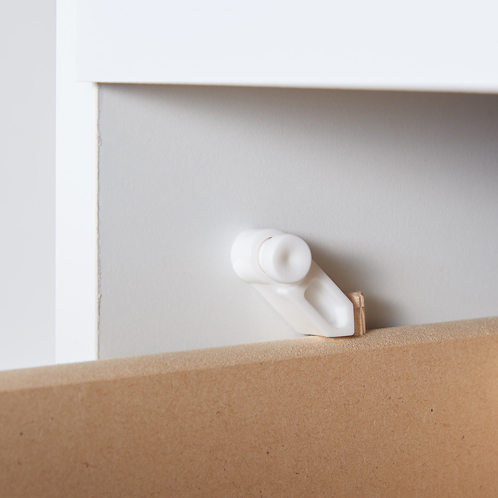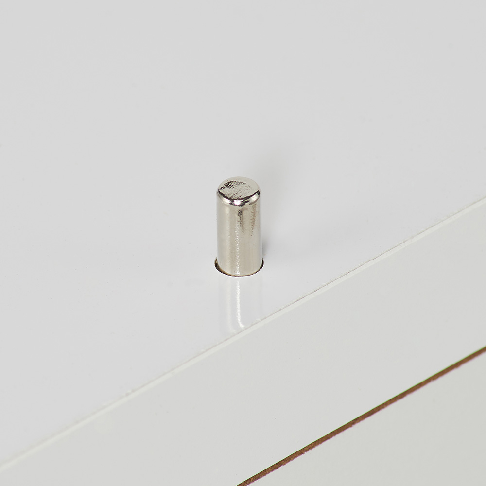 上部の棚板部と下段の引出し部はジョイントピンでしっかりと固定。