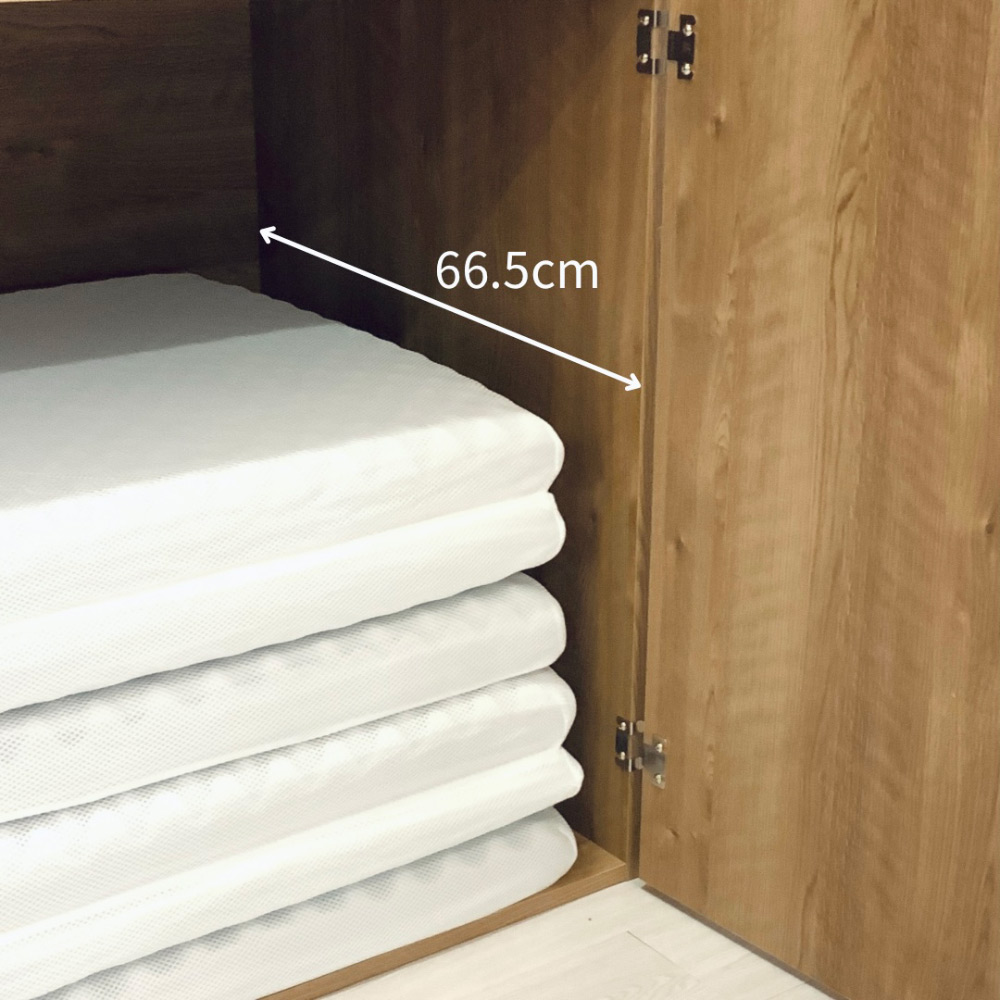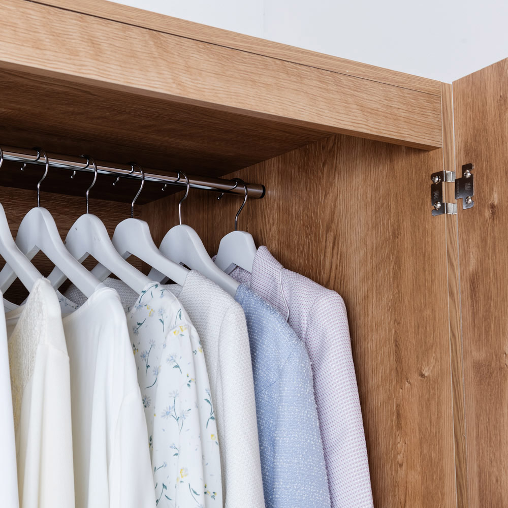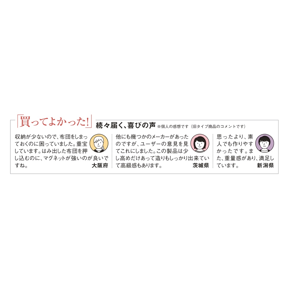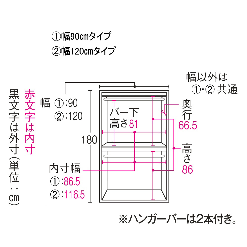 片づく人気の大型収納がリニューアル。押入れ代わりになる収納たんすです。ご自宅の収納場所が足りないとお悩みの方におすすめ。寝具や季節家電、スーツケースなどの収納場所に。取り外し可能なハンガーバー付きでクローゼットハンガーとしても使えます。使用例(幅120cm お届け商品のサイズ)布団や家電が収納できる大型収納庫置き場所に困る布団、家電をまとめて収納できる、押入れ代わりになる収納タンスです。折り畳みマットレスや掃除機など収納しづらいものもラクに入ります。幅90cm、幅120cmの2タイプからお選びいただけます。※組立式の商品です。使用例(幅120cm)どんなお部屋にもなじむナチュラルなデザイン優しい天然木調の木目柄で、洋室にもなじむスッキリしたデザイン。納戸や寝室など、どんなお部屋にもピッタリです。空いたお部屋の収納スペースや、クローゼット収納としてもおすすめ。使用例(幅90cmタイプを横に並べて設置)横に並べるとロータイプの収納庫に!タンスの上下を分割して横に並べて使うことも可能。横に並べると、圧迫感のないロータイプのタンスとしても使えます。扇風機や加湿器など、季節ごとに使う家電や、スーツケースなど場所を取る物も一括収納できて、衣替えや模様替えもスムーズです。使用例(幅120cm)幅のある収納ケースなども入ります奥行たっぷりでマットレスも収納しやすい!有効奥行内寸は、66.5cm。お客様用の折り畳みマットレスや子供布団、座布団など大型アイテムもたっぷり収納できます。取り外し可能なハンガーバー付きハンガーバー2本付きで、クローゼットハンガーとして使えます。ハンガーバー下までの高さは約81cmあり、ジャケットやセーター、スカートも整頓しやすくなります。衣裳部屋にもおすすめ。取り外し可能なので、高さのある家電や掃除用具の収納もカンタン!タンス上下の連結は、ジョイントでしっかり固定転倒防止の金具付き壁面に付属の金具で固定し、転倒を防止できます。幅120cm・奥行71cm(扉を90度に開けた時…約130cm)・高さ180cm幅120cmタイプ扉は左右それぞれ外側に約215度まで開きます