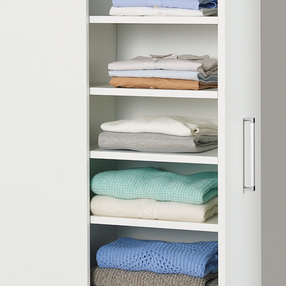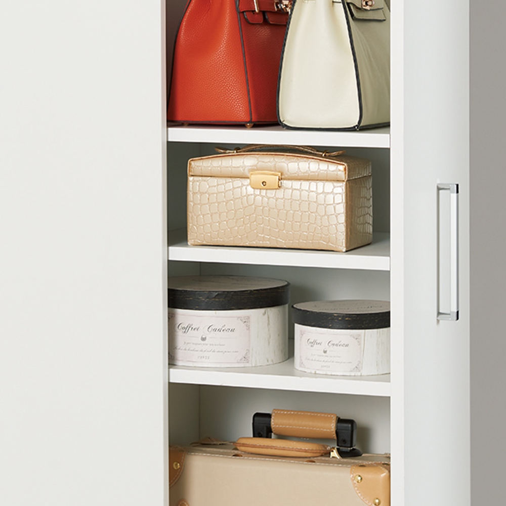 コーディネート例(イ)ホワイト 棚タイプは畳む衣類やバッグ類の収納に。