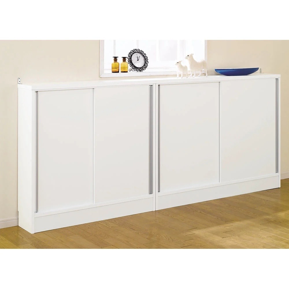 シンプルなデザインで窓下収納としても◎ ※転倒防止金具付きです。 ※写真は幅90cm奥行20cmタイプ、幅120cm奥行20cmタイプの組合せ例。