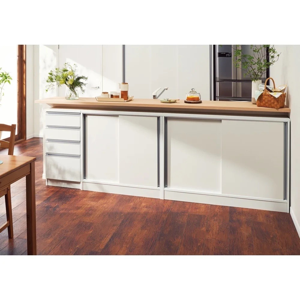 お客様満足度80%以上の高評価!薄型+引き戸で無駄なスペースを作らない頼りになる収納庫。奥行20cmと30cmが選べます。引き戸タイプなので開閉に場所を取らず、薄型スリム収納で本棚や食器棚、CD、DVD収納として隙間を有効に活用。薄型+引き戸で無駄なスペースを作らない頼りになる収納庫奥行20cmと30cmが選べる薄型の収納庫です。引き戸タイプなので開閉に場所を取らず、テーブル脇などの限られたスペースでもご使用いただけます。薄型スリム収納で本棚や食器棚、CD、DVD収納として隙間を有効活用できます。日本製でこのお値段はお買い得です!!1. 省スペース型(奥行き30cm)のカウンター下収納庫で、設置場所によりリビング収納、窓下収納にもなり大変便利です。2. 取っ手はフラットタイプを採用、すっきり感があります。3. 本体はハードコート紙を採用、傷汚れに強いです。4. 本体側板は巾木カット仕様、すっきり本体が設置場所に収まります。※可動収納棚板6枚付き。棚板奥行(有効)内寸:23(23.5)cmです。〜安心と信頼の国内生産品〜◎熟練の家具職人がひとつずつ丁寧に仕上げたキッチン収納・本棚(書棚)です。◎細部の丁寧な仕上がりなど、国産品ならではの高品質をお楽しみください。