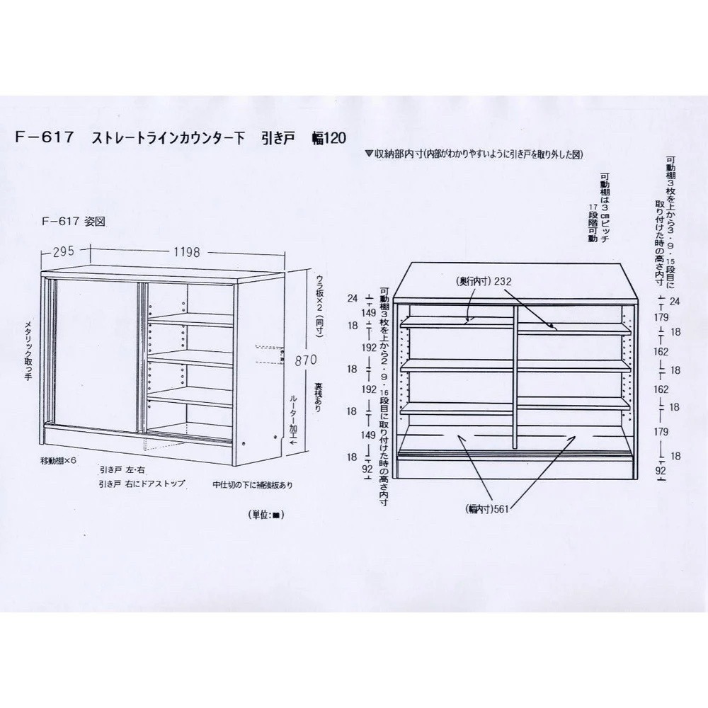 可動棚は3cm間隔調節、17段で調節可能。 ※棚板奥行 有効内寸約24.5cm