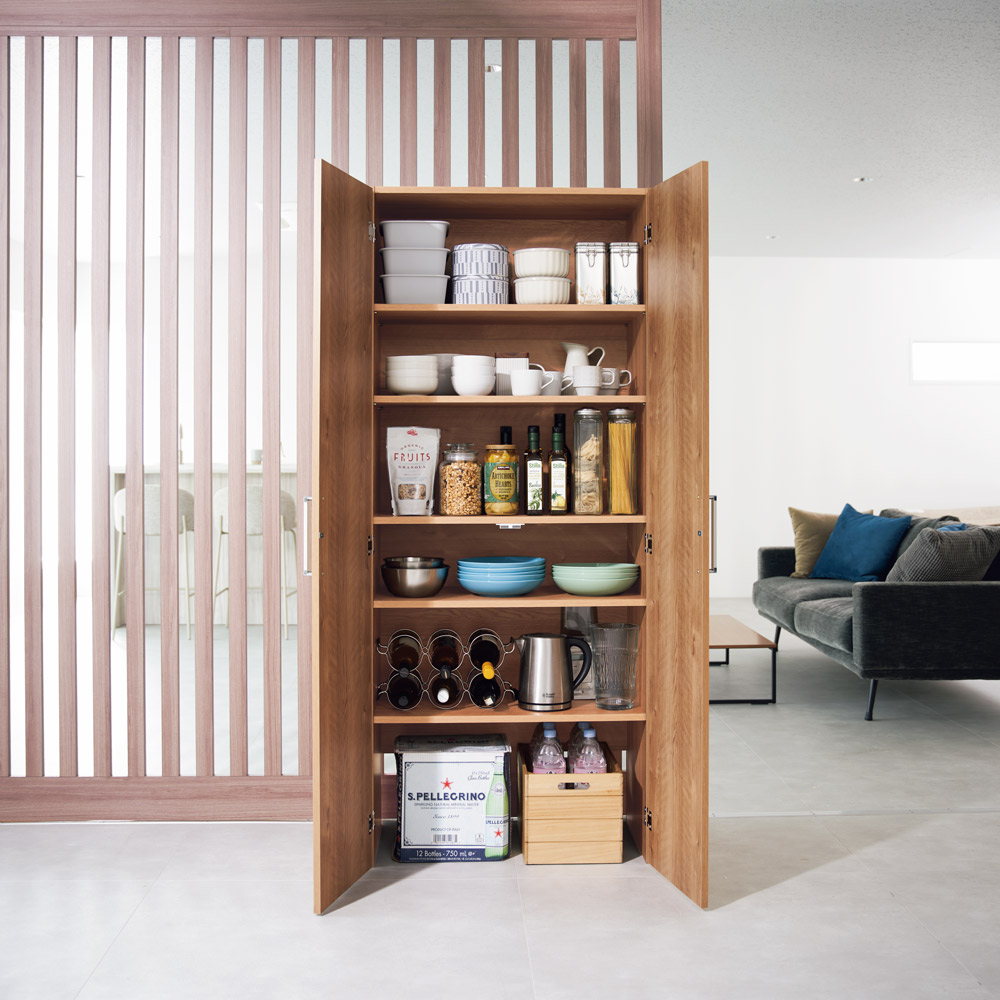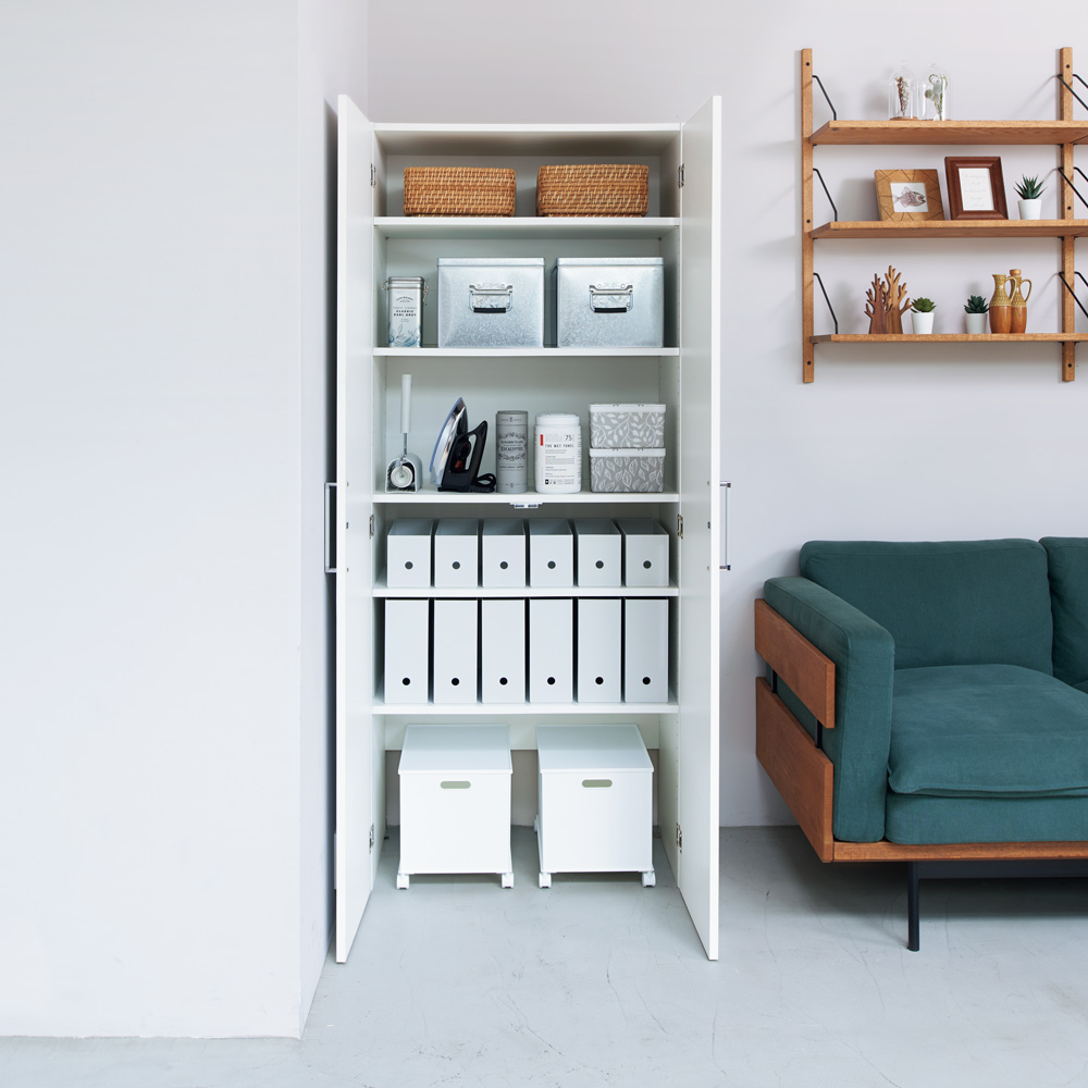 (イ)ホワイト 生活家電やストック類、書類やファイルボックスなどを入れてリビングパントリーにも。