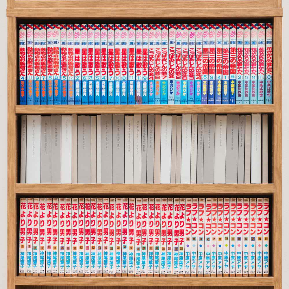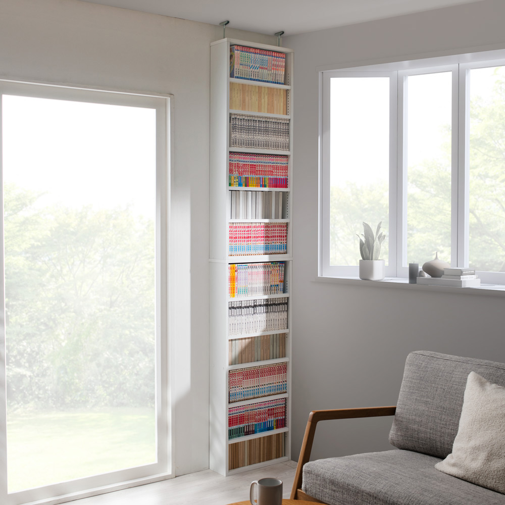 (ア)ホワイト わずかなすき間も高さを活かして、最大限に収納できます。「好き」を並べる至福のコミック棚。