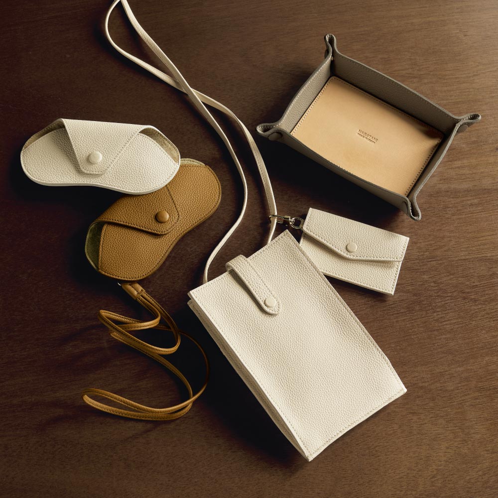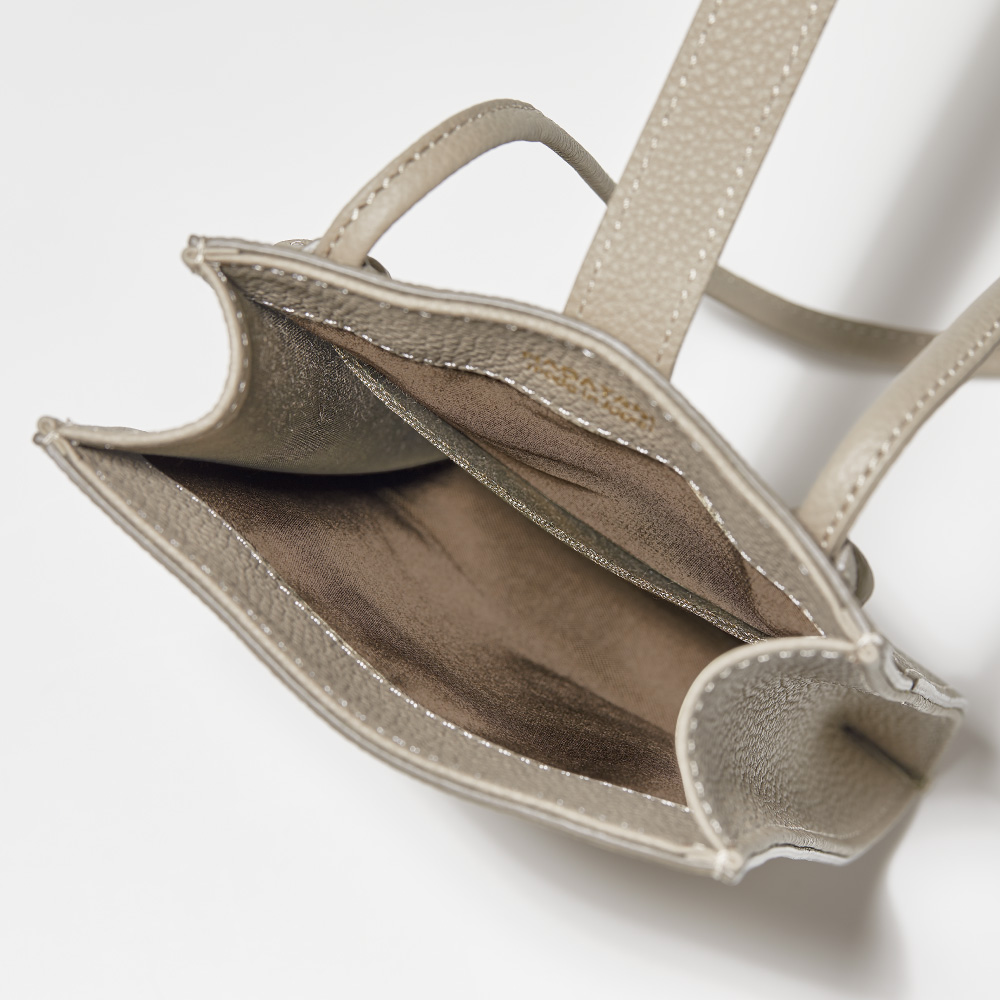 Nagatani スモールレザーグッズ誠実さと確かな技術で信頼を集める日本の名匠「 ナガタニ」。一流メゾンも惚れこむドイツの老舗タンナー製レザーの革小物は、大切な人へのギフトにも。キップシュリンクレザーの手触り、品格美を手近にドイツ「ウェインハイマー」社の希少なキップシュリンクレザー「エスポワール」。ふっくらとソフトな手触り、傷が目立ちにくく、美しい細かなシボが特徴です。スマホや財布を持ち歩くのに便利なミニショルダーバッグ。取り外せる小さなケース付きで細かな収納に配慮した優秀デザインです。
