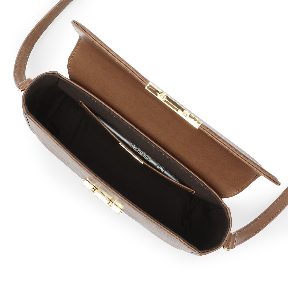 DESIGNED FOR A LIFETIME本格派が選ぶ、クラシカルな“洗練小物”モダンな長方形ディテールで、上質感のある留め具がアクセント。長めのストラップは斜めがけも可能、きれいめにもカジュアルなスタイルにも対応してくれます。コンパクトながら収納力があり、クラシカルな雰囲気がおしゃれ。ワインとコーヒーの搾りかすを使った深みや渋みのあるカラーのヌメ革です。一点ずつ染め感が異なり、表情豊か。使い込むほど味が出て、持つだけでこなれ感を演出できます。「LEZZA BOTANICA」植物由来の食の副産物(搾りかす)を再活用し、鞣し工程においてタンニン剤として使用したサステナブルなレザー「レッザ ボタニカ」を使用。力強さとしなやかさを兼ね備えた仕上がりで、天然由来の鞣し剤が革に自然な深みを与えています。長く使うことで味わいが増し、エージングの変化も楽しめる魅力的なレザーです。