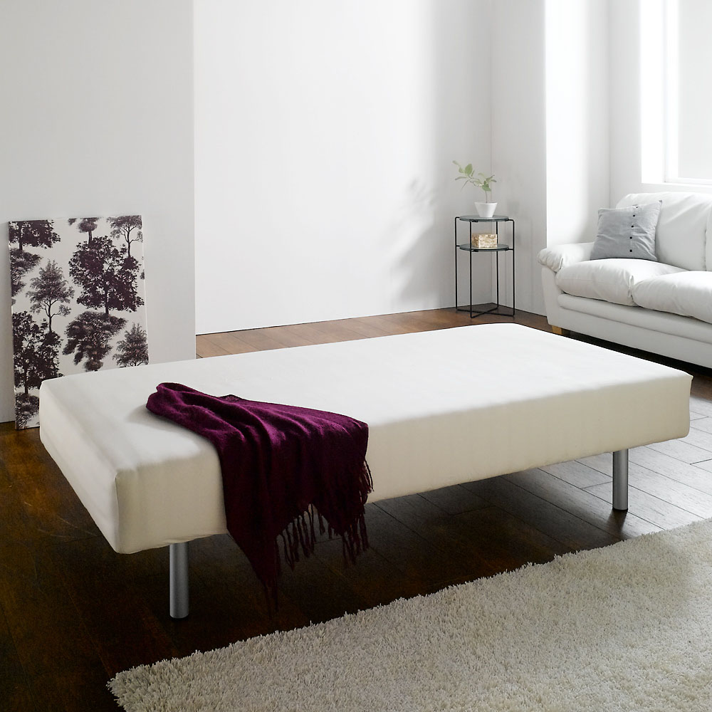 シンプルで使いやすいフランスベッドのマットレスベッドで、ワンランク上の確かな寝心地を。高さを選べるようになりました。〜この商品は脚高9.5cmのロータイプです〜老舗フランスベッドの心地よい睡眠にこだわるあなたに。 少し硬めのマルチラススプリングベッドを収納もできる脚付きタイプで。■日本の老舗ベッドメーカーのフランスベッドが作る品質と安心さがポイント。◎一般ベッド国内トップメーカーとして、日本人の体格と日本の気候・風土に合った商品開発をするフランスベッド。◎厳しい日本の品質基準よりさらに細かい自主基準を設け良質なベッドにこだわり続けています。 JIS(日本工業基準)よりも厳しい独自のFES規格で社内検査を実施しています。■これ1台で使いやすい脚付きマットレスベッドのポイント!◎通常のベッドがフレームとマットに分かれているのに対し、マットと本体が一体化になっているのでお手軽にベッドライフがスタートできます。◎余分な装飾がないのでお部屋を広く見せることができます。一人暮らしやワンルームならスッキリとしたお部屋に。 頭側を壁に付ければ壁にもたれてソファのようにも使えます。◎シングルサイズのベッドパッド・ボックスシーツが通常のマットレス同様ご使用いただけるので、清潔に長くお使いいただけます。■フランスベッドのマットレスの寝心地ポイント◎マット内部は高密度連続スプリング(マルチラススプリング)を使用。少し硬めの寝心地。もちろん国内工場生産。◎マットレスの縁まで枠があるので寝返りで端に移動しても沈みこみが少なく落ちそうになりません。そのためマットレスの広く有効に使えます。◎高密度スプリングの特徴は・・・ ・全体に強度がある(底つき感がない) ・部分的なマットの落ち込みが少ない ・コイルスプリングに凹凸感がなく寝返りしやすい ・マット内部に湿気を溜めにくい通気性のよさ ・耐久性■脚部4本を回して取り付けるだけの簡単設置。◎マットレスに脚部を取り付けるだけ。簡単に組み立てが出来ます。◎角にはしっかりとした強度の金属プレートが取り付けられているので強度も安心。〜ベッドの選び方についての特集はこちら〜ベッドの選び方〜暮らしに合わせた大きさ選びのポイントとフレームの種類について〜