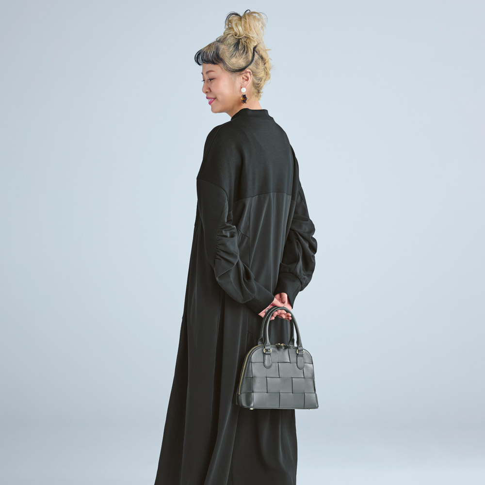 春の着こなしを格上げするのはバッグ。軽やかなアイテムで、お出かけが楽しくなること間違いなし。しっとり柔らかい上質なシープスキンの2WAYバッグ。丁寧に編み込まれた、太めのメッシュデザインが特徴。軽くて、両サイド下の方まで開くファスナー開閉。ショルダーストラップつきで斜めがけも可能。