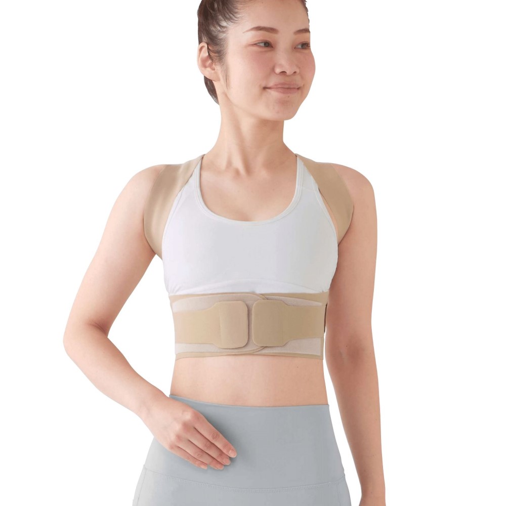 整形外科医監修のお医者さんの(R)サポーターシリーズ。肩甲骨と肋骨を意識し姿勢を整えるサポーター薄くて吸い付くようなフィット感のある生地感が特徴の“ピタ肌”シリーズサポーター。体幹姿勢サポーターは、その特徴を活かしながら、背筋のサポート力を高めて、美姿勢をラクにキープできるように設計されています。【体幹姿勢サポーターのココがいい】・背筋、肋骨をサポートし、体幹を意識しやすく背中のセンター部分に長めのボーンとその左右に短めのサイドボーンを配置し、体にフィットしながら自然に背筋を伸ばします。また、肋骨周りは二重ベルト仕様で、軽い力でキュッと締まります。・フィット感ある素材で、動きやすく、アウターにも響きにくい。